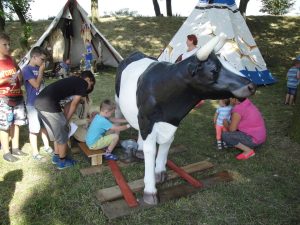 – Uczestnicy imprezy brali udział w licznych konkurencjach, jak strzelanie z łuku, wyścigi węży, połów rybek, nawlekanie koralików i dojenie krowy – informują pracownicy Urzędu Gminy Żukowice. – Za udział przewidziano drobne upominki. Osoby niepełnosprawne otrzymały pamiątkowe kubeczki z nadrukiem nazwy imprezy i tipi. Przeprowadzono też konkurs rodzinny, w którym za pierwsze miejsce nagrodą był basen, za drugie – grill, a za trzecie – wentylator.