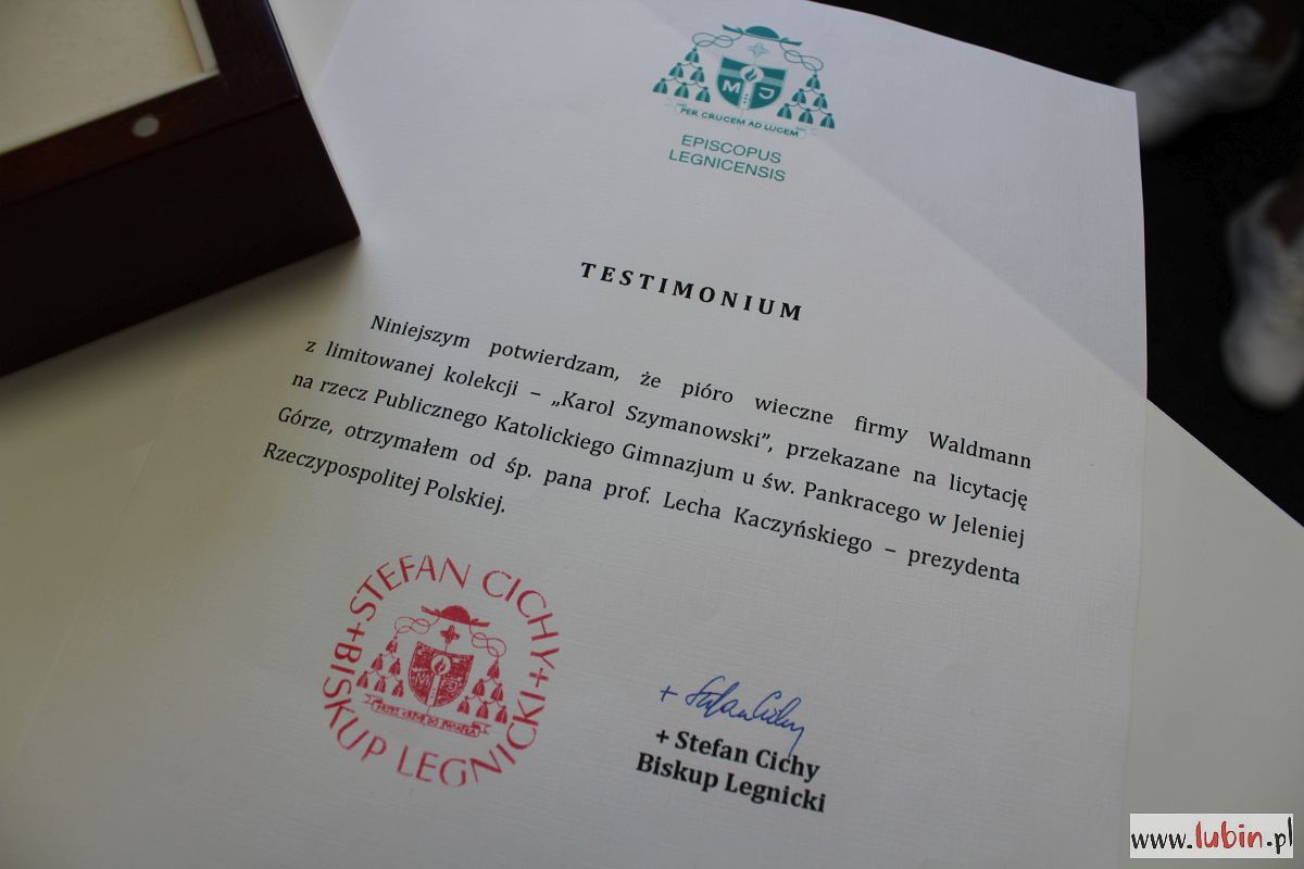 Jednak najcenniejszym przedmiotem do wylicytowania jest pióro Lecha Kaczyńskiego, którego autentyczność poświadczył biskup Stefan Cichy. Organizatorzy wycenili je na 4 tys. zł i taka też będzie jego cena wywoławcza.