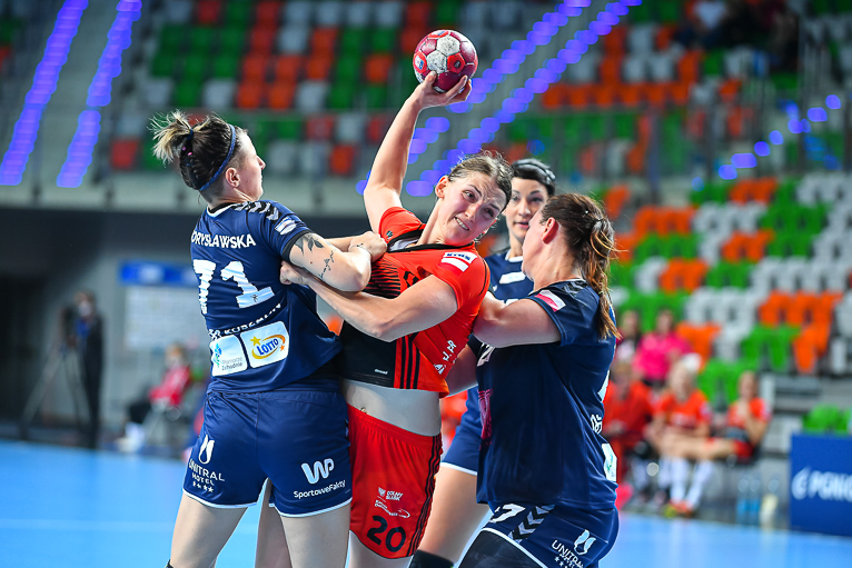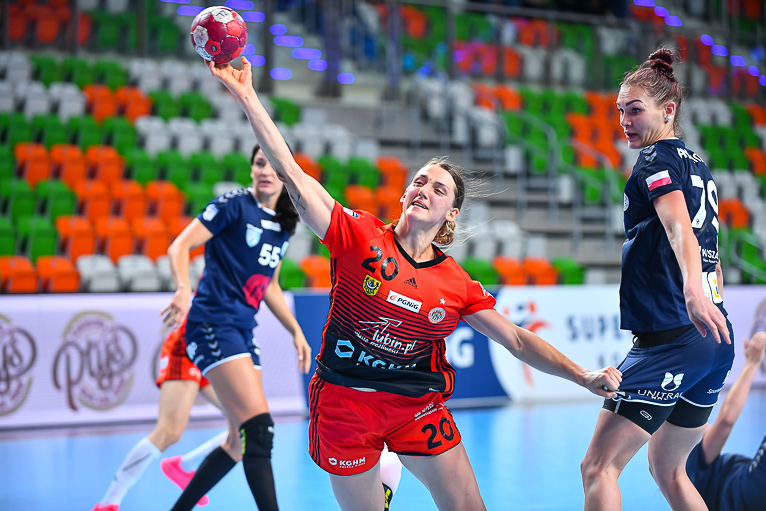 Chwilę po przerwie przyjezdne wyszły na plus trzy, po trafieniach Emilii Kowalik i Anny Mączki, ale szybkie bramki Zagłębia sprawiły, że było 12:13. Remis ponownie mieliśmy w 40. minucie (14:14), a niespełna dwie minuty później lubinianki po kontrze i bramce Darii Zawistowskiej odzyskały prowadzenie. Później byliśmy świadkami walki bramka za bramkę i wymiany ciosów. Pięć minut przed końcem ważne bramki zdobyły – najpierw Joanna Drabik z koła, a następnie Karolina Kochaniak z karnego i Zagłębie wygrywało 19:17, grając do tego w przewadze. To był decydujący moment meczu, który zapewnił Miedziowym ważne trzy punkty.