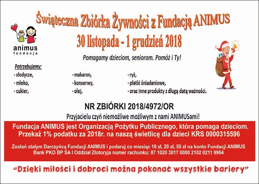 W najbliższy piątek rozpocznie się świąteczna zbiórka żywności, którą już po raz czwarty organizuje Fundacja Animus. Akcję wspierają wolontariusze z ZHP oraz oraz uczniowie Szkoły Podstawowej nr 3. „Świąteczna Zbiórka Żywności z Fundacją ANIMUS” potrwa dwa dni i zostanie przeprowadzona w kilku złotoryjskich marketach.