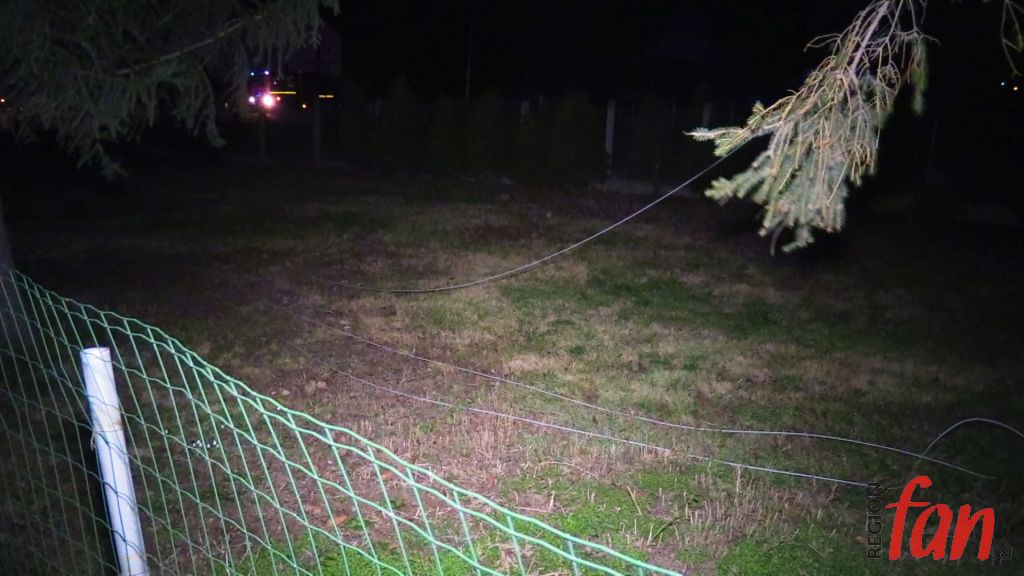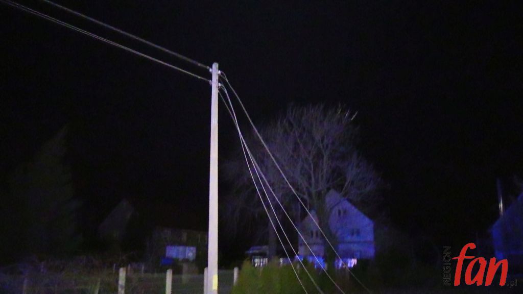 Po chwili „fajerwerki” ustały, ale i tak wszyscy bali się podejść do ogrodzenia. I słusznie. Wezwani strażacy zabezpieczyli miejsce do czasu przyjazdu pogotowia energetycznego. Technicy najpierw odłączyli zasilanie i usunęli zerwane linie. Prąd w miejscowości przywrócono, jednak kilka posesji spędziło noc z niedzieli na poniedziałek bez energii. Awaria okazała się poważna i jej usunięcie może trochę potrwać.