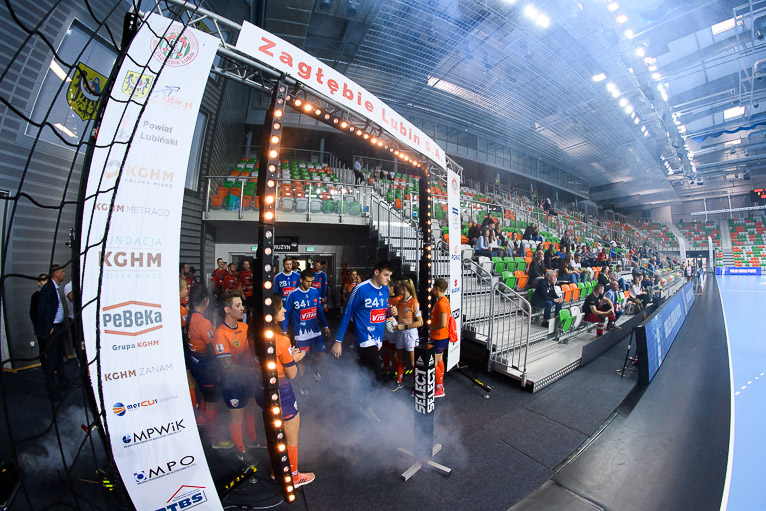 Tomasz Gębala zdobył pierwszą bramkę w meczu, ale a kolejną musieliśmy trochę poczekać. Obie drużyny miały swoje okazje, ale popis dawali bramkarze, w tym Jakub Skrzyniarz, który obronił rzut karny, wykonywany przez Valentina Ghioneę. Drugie trafienie zanotowaliśmy w siódmej minucie, po rzucie Lovro Mihica. Minutę później o czas poprosił Bartłomiej Jaszka, gdyż było 0:4. Lubinianie na swoją pierwszą bramkę czekali do dziewiątej minuty, a zdobył ją Jan Czuwara. Niestety dla miedziowych to wicemistrzowie Polski dyktowali warunki i po kwadransie było już 2:9. Bartłomiej Jaszka znów zmuszony został do wzięcia czasu, tym razem poskutkowało to na tyle, że miedziowi odrobili połowę strat do utytułowanych rywali. Pomimo dobrej postawy Michała Stankiewicza, który do przerwy zdobył prawie połowę bramek dla Zagłębia, gospodarze przegrywali do przerwy wyraźnie.