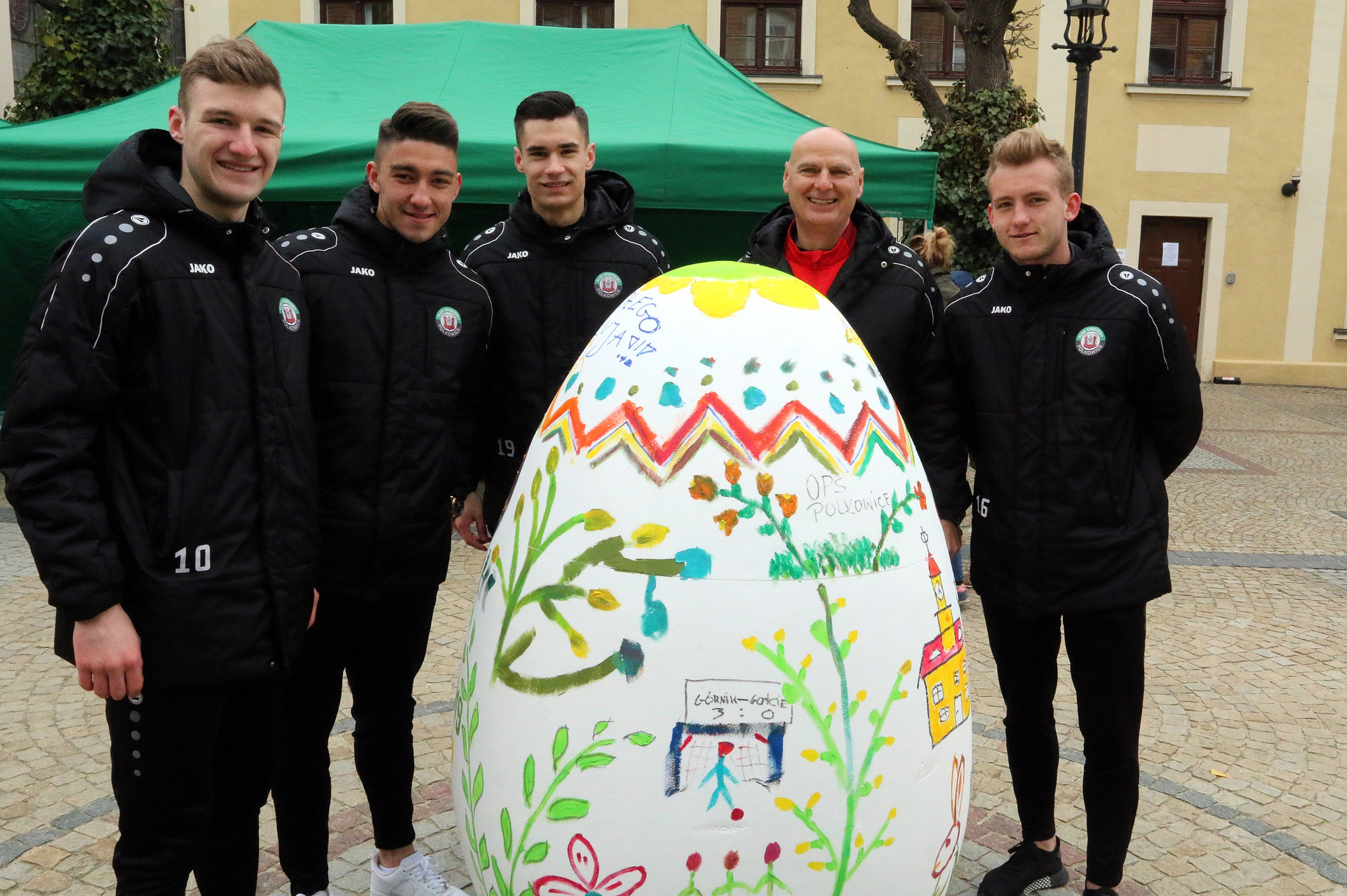 Piłkarze Górnika Polkowice włączyli się w akcję malowania wielkanocnych pisanek. Polkowicki klub reprezentowała 5-cio osobowa ekipa: Jakub Kopaniecki, Dawid Świdwa, Kacper Kocik, Kornel Ciupka oraz masażysta – Piotr Faltyński.