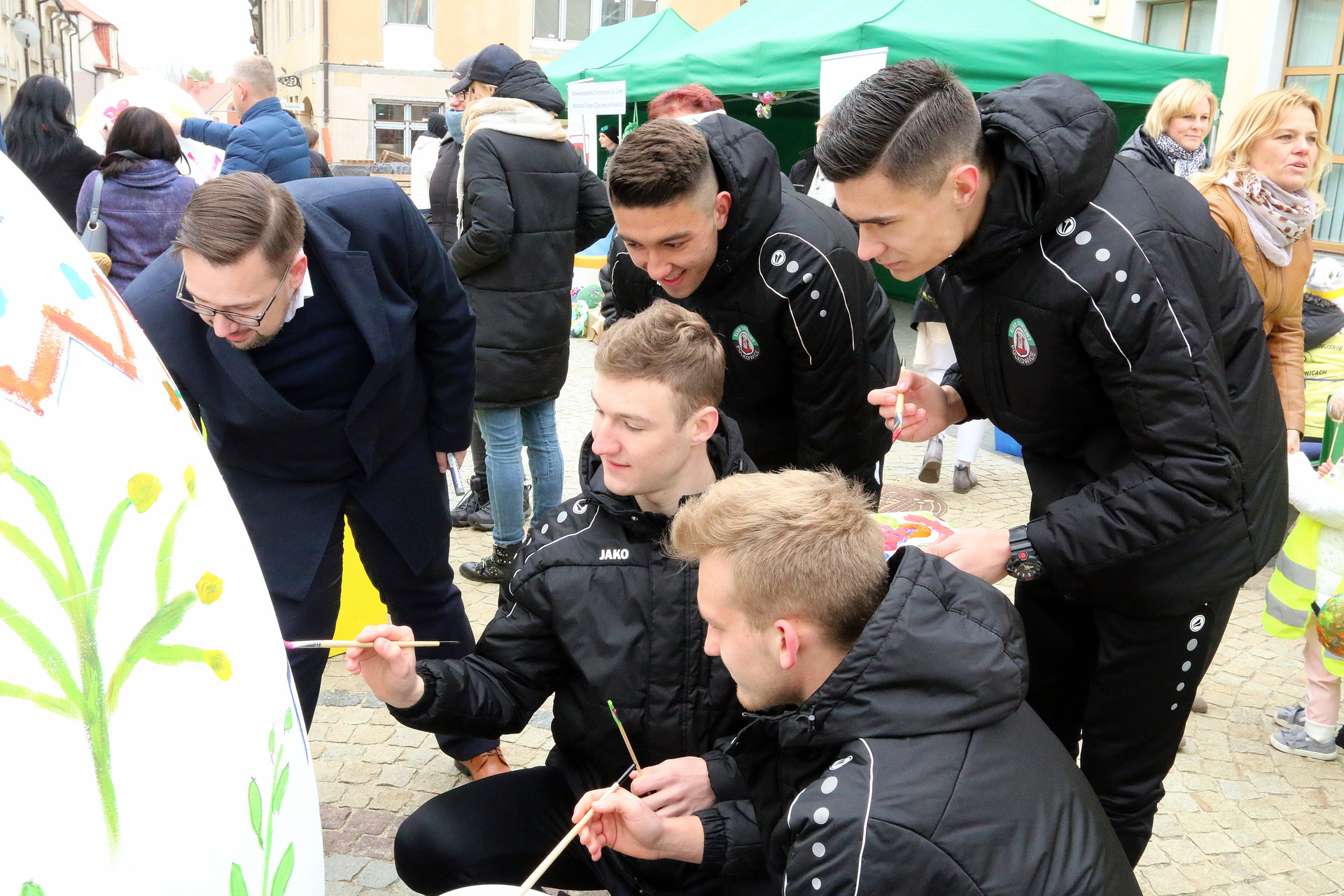 Tego dnia nie mogło zabraknąć piłkarzy na polkowickim rynku. Zawodnicy wczuli się w rolę artystów mając do dyspozycji pędzle i palety z farbami.