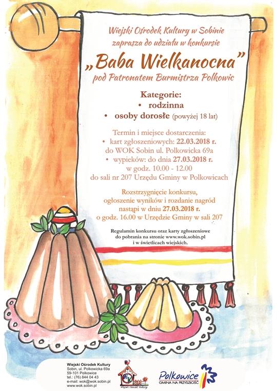 – „Baba Wielkanocna” jest to nowa propozycja konkursowa – informują pracownicy WOK w Sobinie. – Patronat nad nią objął burmistrz Polkowic.