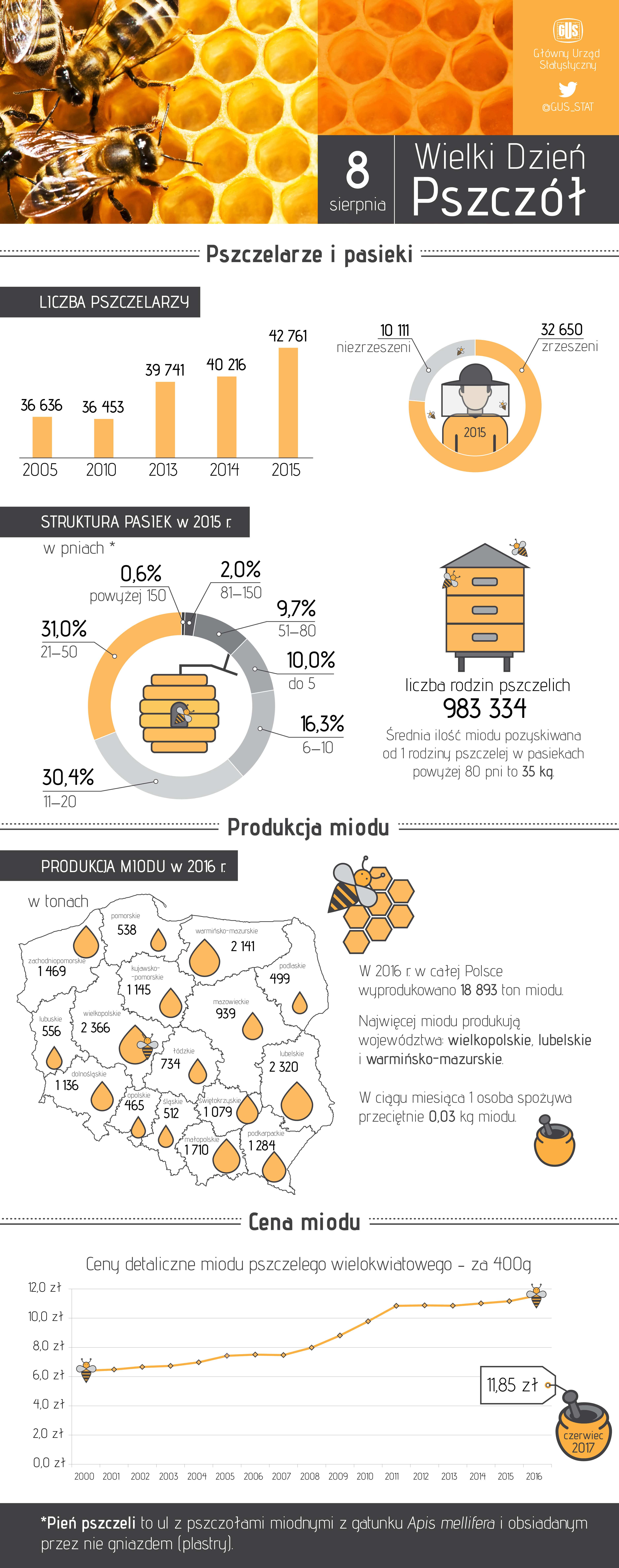Mało korzystamy też z wyrobów pszczelich. Według danych GUS (patrz: infografika poniżej) miesięcznie jemy zaledwie 30 gramów miodu, czyli około 5 łyżeczek. To za mało, by móc skorzystać z jego dobroczynnych właściwości.