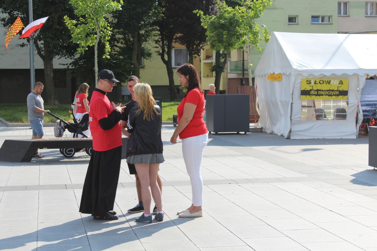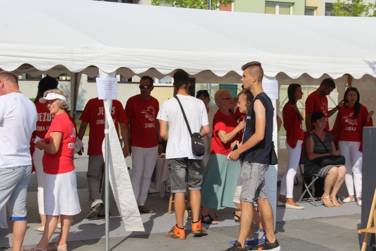 – Spotykamy się tu, żeby ogłaszać, że Panem i królem całego świata, w tym także naszego miasta, jest Jezus Chrystus. Dlatego nazwaliśmy to wydarzenie Jezus na Rynku. Chcieliśmy w tę uroczystość zaprosić ludzi do wspólnej modlitwy i uwielbienia Pana Jezusa. Modlimy się za ludzi o ich uzdrowienie, zapraszamy wszystkich, żeby przyjmowali Jezusa do swojego życia jako jedynego Pana i zbawiciela. Mamy tu dom piękna, gdzie kobiety modlą się za wstawiennictwem Maryi o odnowienie swojego serca. Jest też siłownia dla mężczyzn, gdzie modlimy się o moc duchową dla wszystkich zmagań – dodaje duchowny.