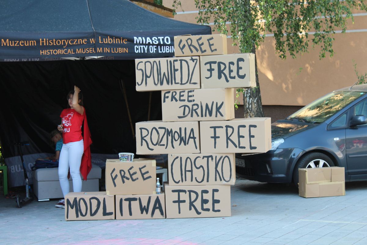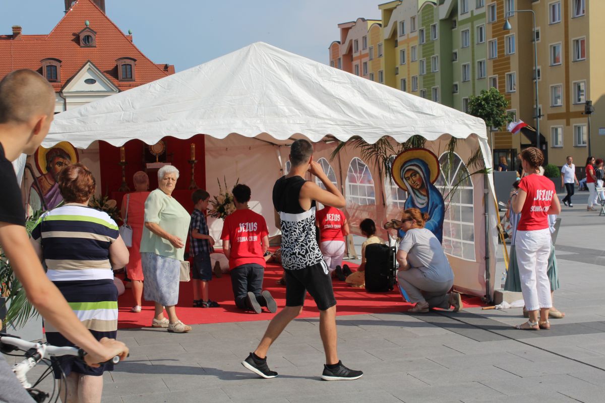 Jest tu Dom Piękna dla kobiet i Siłownia odnowy duchowej dla mężczyzn. Jest szpital polowy, w którym lekiem na wszelkie dolegliwości jest Duch Święty. Ale przede wszystkim panuje tu miła i przyjazna atmosfera – w Rynku trwa właśnie spotkanie katolików z Jezusem. Wydarzenie to organizowane jest w Lubinie po raz pierwszy i – sądząc po dużym zainteresowaniu mieszkańców – prawdopodobnie nie po raz ostatni.