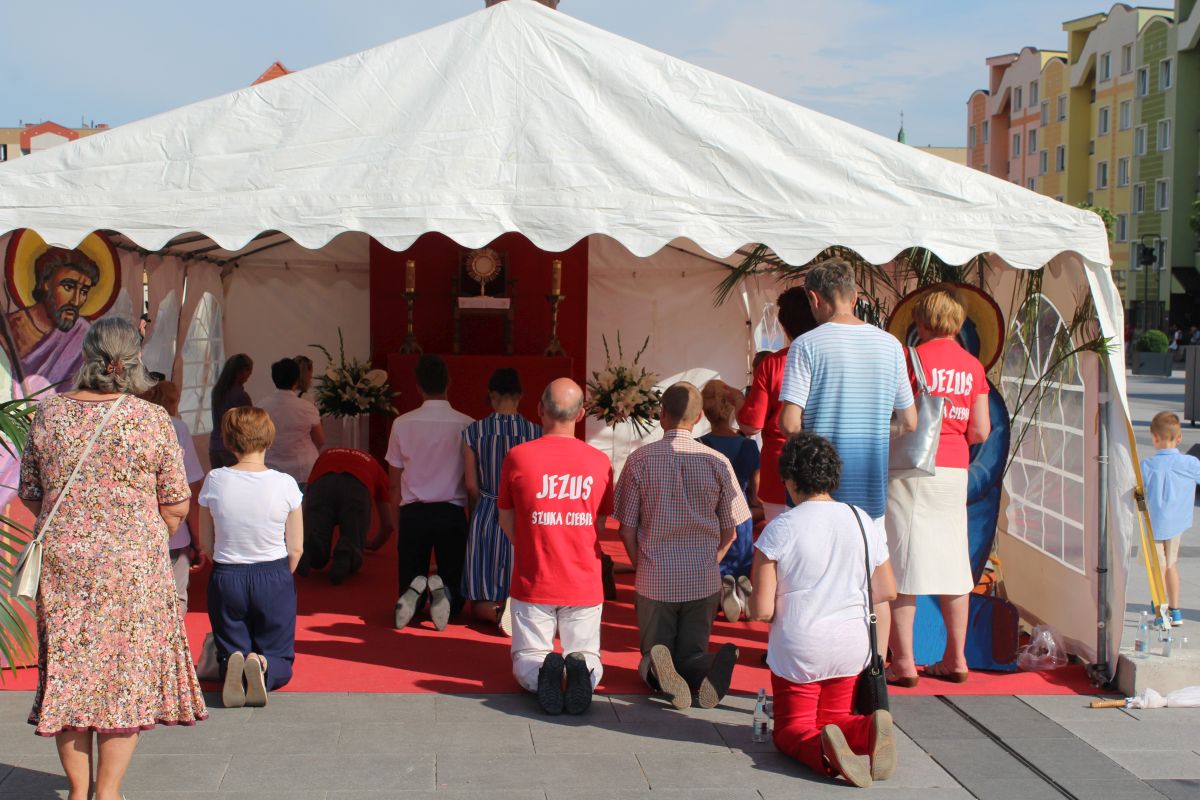Przed Ratuszem stanęła scena, na której wierni modlą się i śpiewają. Na placu Rynku rozstawiono natomiast kilka specjalnych namiotów, gdzie każdy ma szansę na niezwykłe spotkanie z żywym Jezusem.