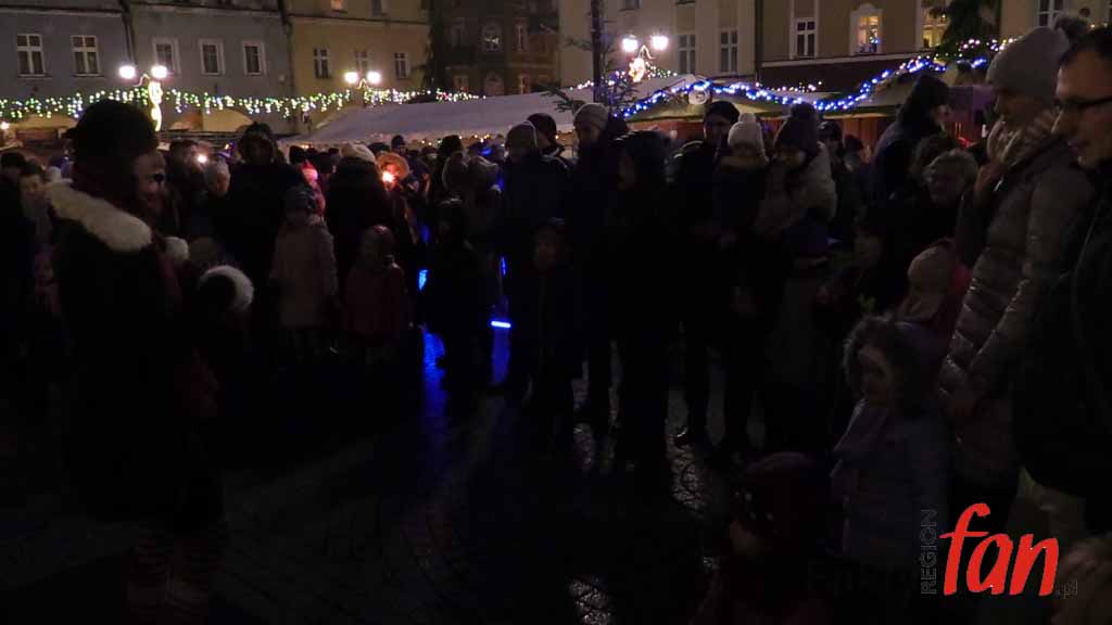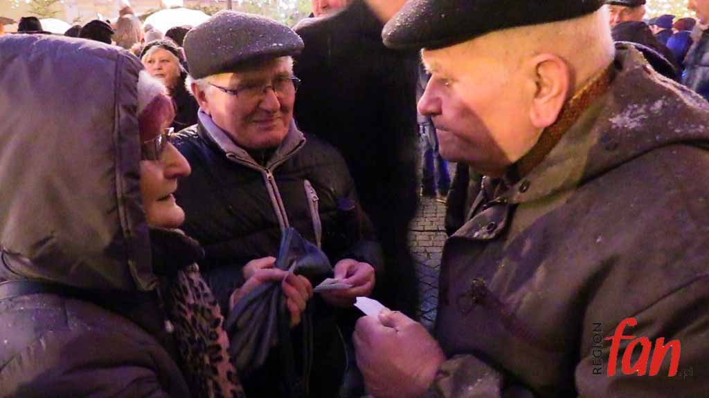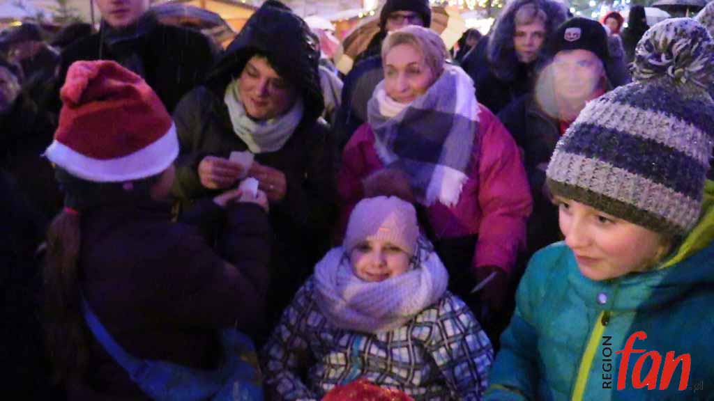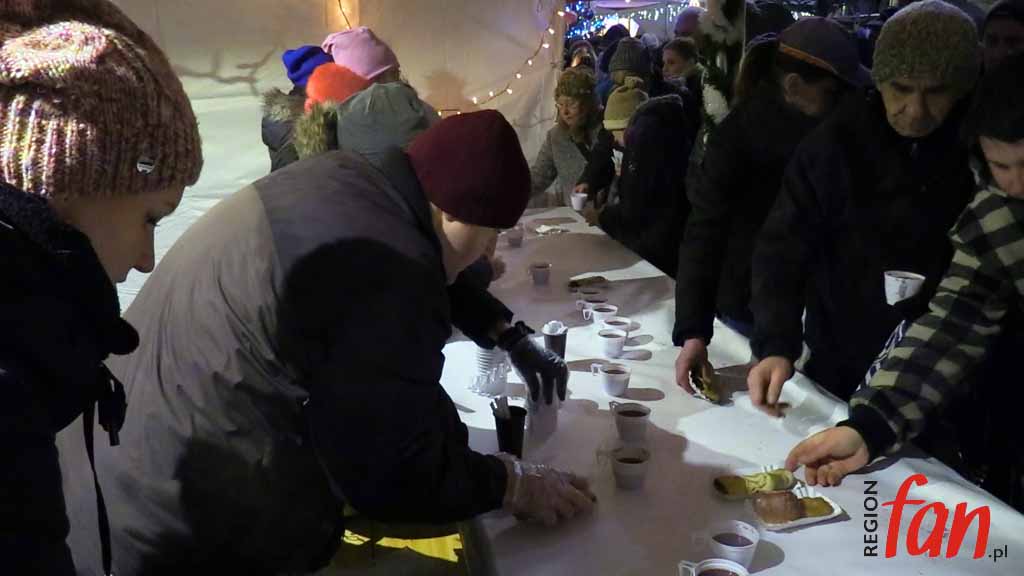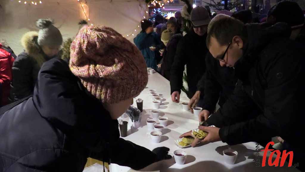 Wigilijne spotkanie było zwieńczeniem czterodniowego jarmarku. Przepięknie przystrojony Rynek wypełnił się mieszkańcami już przed godziną 16. Przy dźwiękach kolęd wszyscy czekali na pierwszą gwiazdkę. Po alejkach przechadzał się wielbłąd, kucyki i renifery w powozie. Opłatki pobłogosławił ks. dziekan Dominik Drapiewski, po czym mieszkańcy dzielili się białym chlebem i składali sobie życzenia.