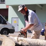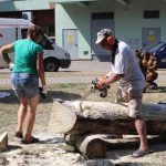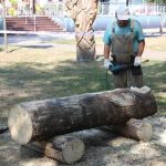 W parku za Muzą pojawią się również rzeźbiarze, którzy pracę rozpoczęli już dzisiaj. Panowie tną, dłubią, a w tle słuchać warkot pił łańcuchowych i czuć zapach drewna.