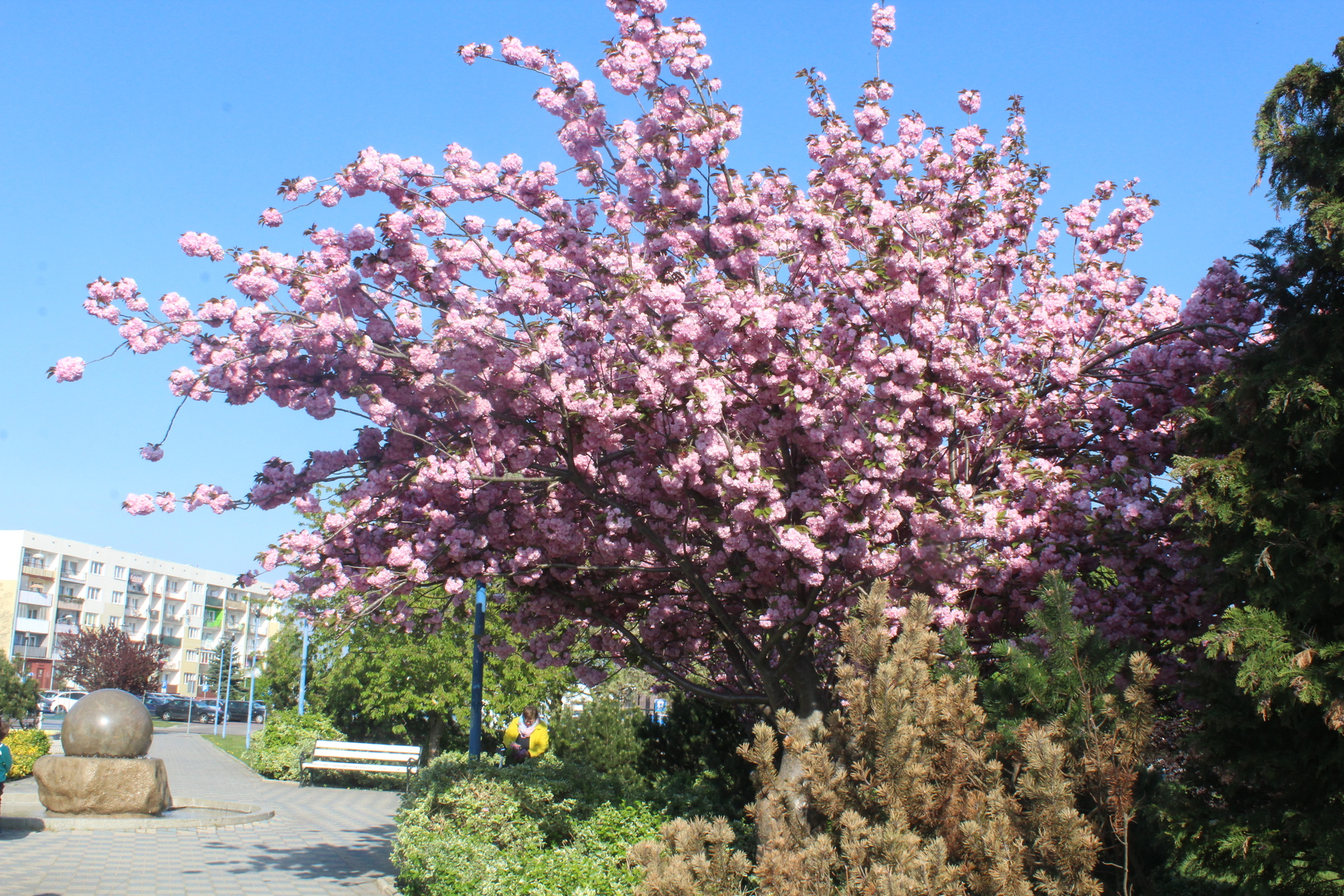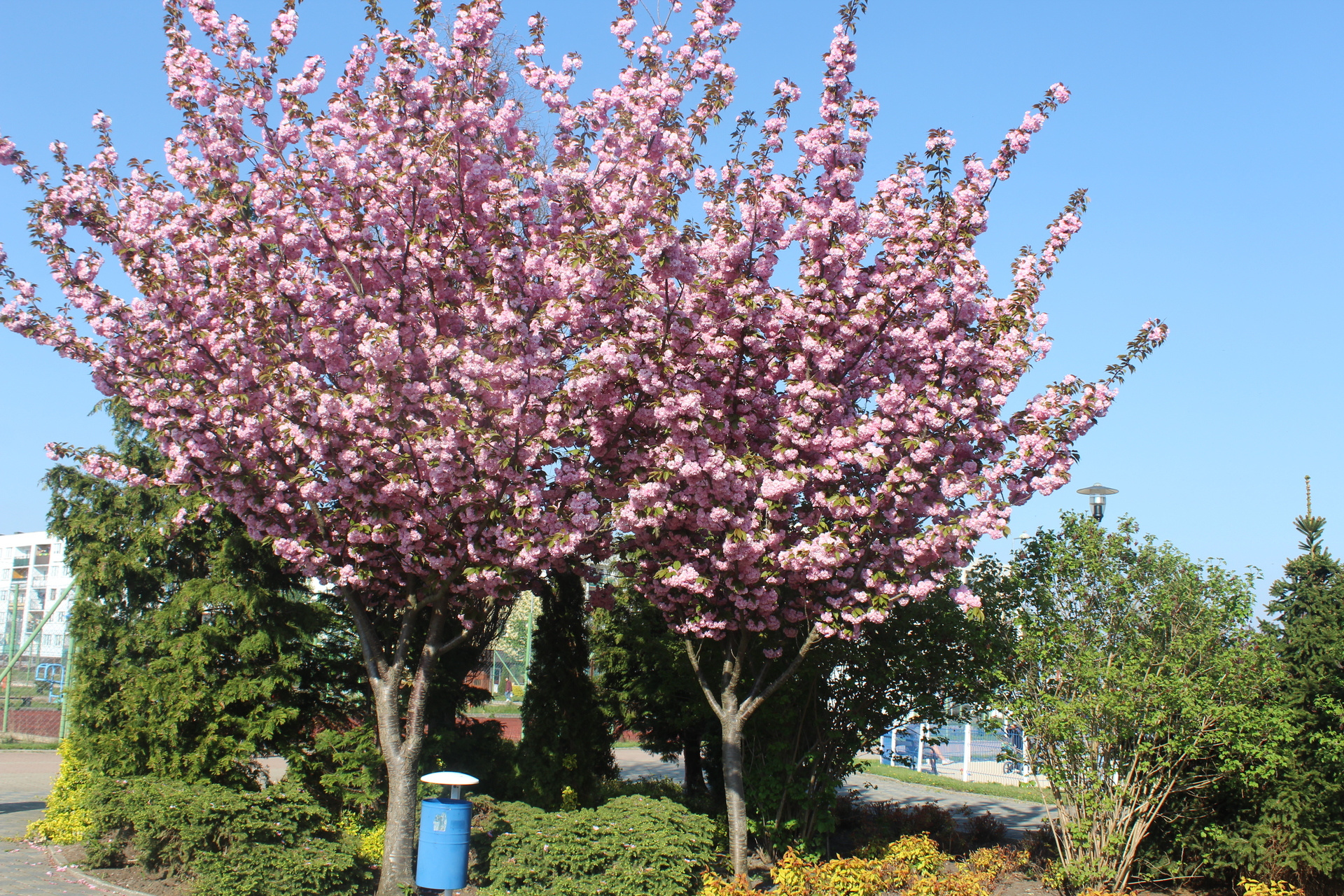 W kilku miejscach na terenie Polkowic, m.in. przy Placu Honorowych Dawców Krwi, zakwitła wiśnia odmiany „Kanzan”. W tym tygodniu przypada szczyt kwitnienia drzewek, a ich urok przyciąga mieszkańców.
