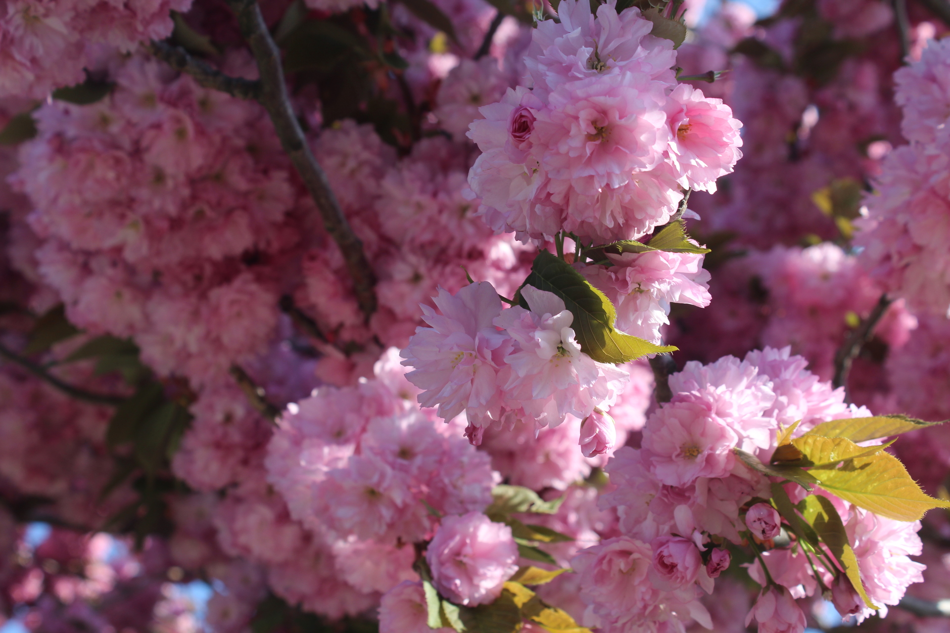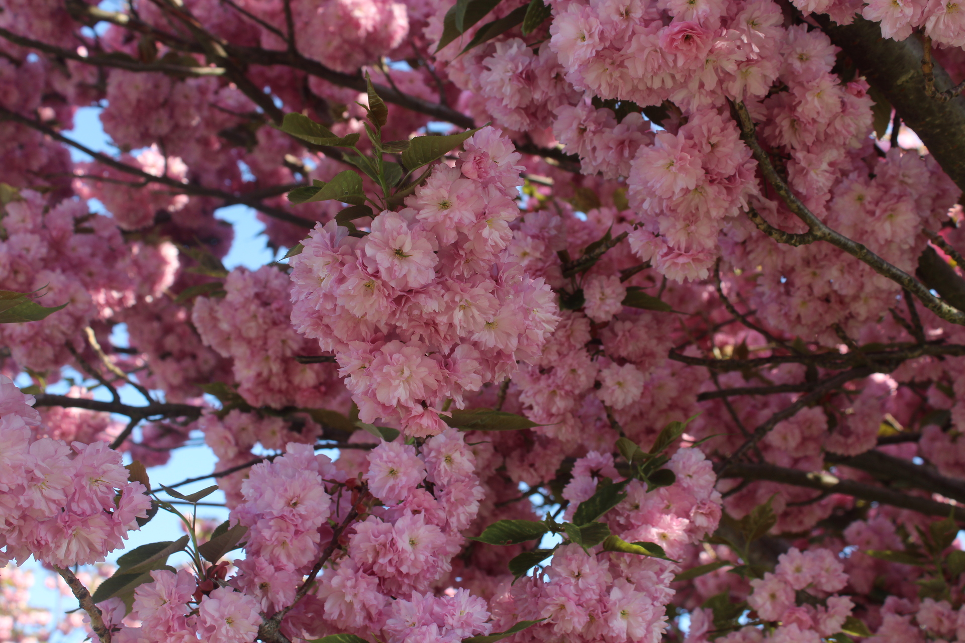 Ciepły kwiecień sprzyja kwitnącej wiśni. Drzewka odmiany „Kanzan” mają kwiaty tworzące małe bukieciki, a z daleka wyglądają jak różowe chmurki.