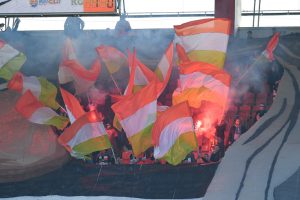 Podczas spotkań ligowych środki pirotechniczne są stałym elementem dopingu najbardziej zagorzałych fanów klubów piłkarskich. Niestety, tym razem ich użycie odbiło się na zdrowiu uczestników takiego wydarzenia. W spotkaniu pomiędzy KGHM Zagłębiem Lubin a Jagiellonią Białystok w ramach 29. kolejki ekstraklasy rundy zasadniczej, młody sympatyk miedziowej ekipy po odpaleniu petardy ranił sam siebie i dwie nastolatki. Dodatkowo wybuch środka pirotechnicznego uszkodził kilka krzesełek na sektorze G. 28-letni kibic został ukarany grzywną oraz zakazem wejścia na imprezy masowe.