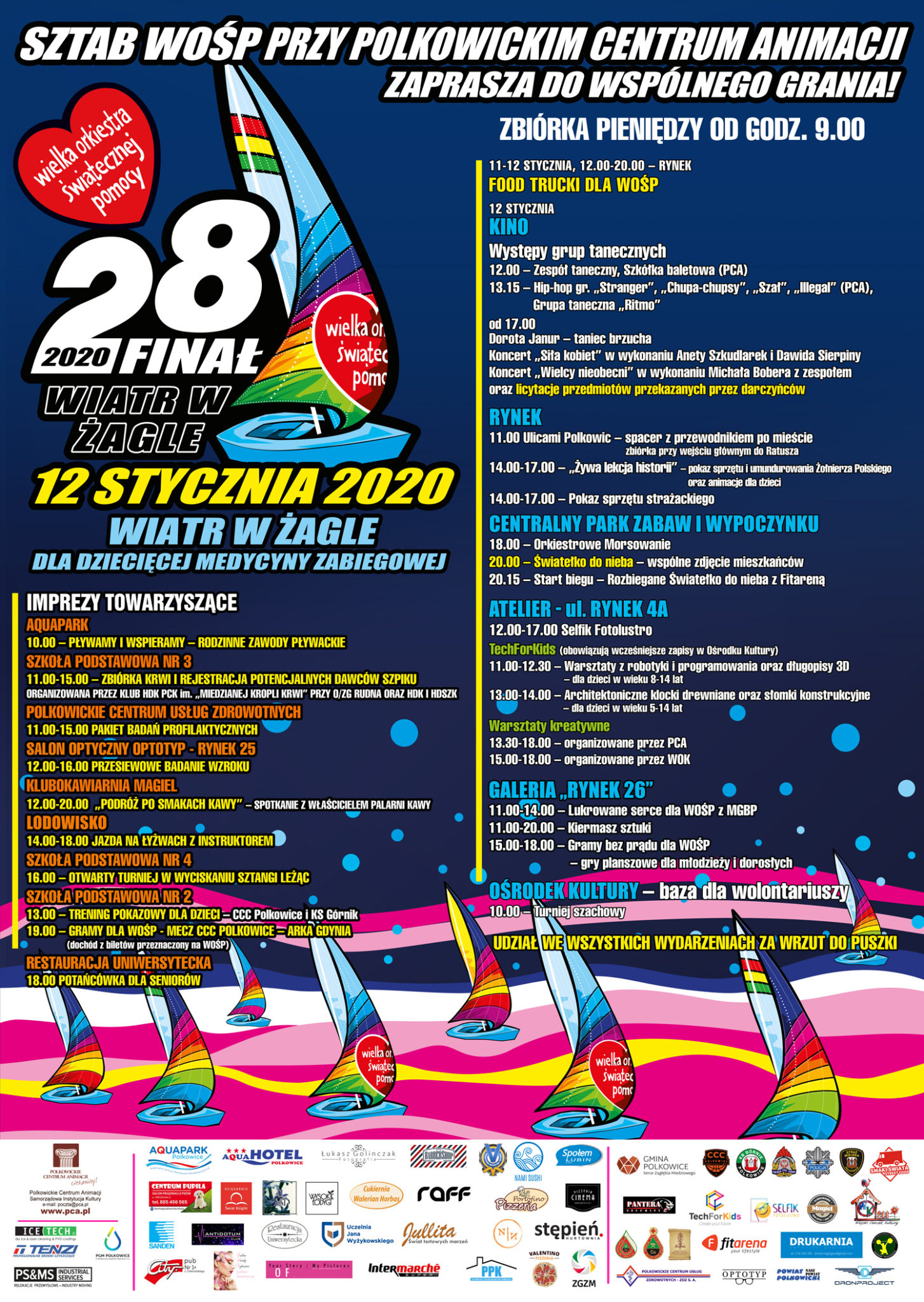 Koncerty, kiermasz gadżetów, zbiórka krwi, spacer z przewodnikiem po mieście, pokazy sprzętu, „Żywa lekcja historii” – to zaledwie kilka wydarzeń organizowanych w Polkowicach w niedzielę, 12 stycznia, podczas 28. Finału Wielkiej Orkiestry Świątecznej Pomocy. W tym roku zbieramy pieniądze na zakup sprzętu dla dziecięcej medycyny zabiegowej.