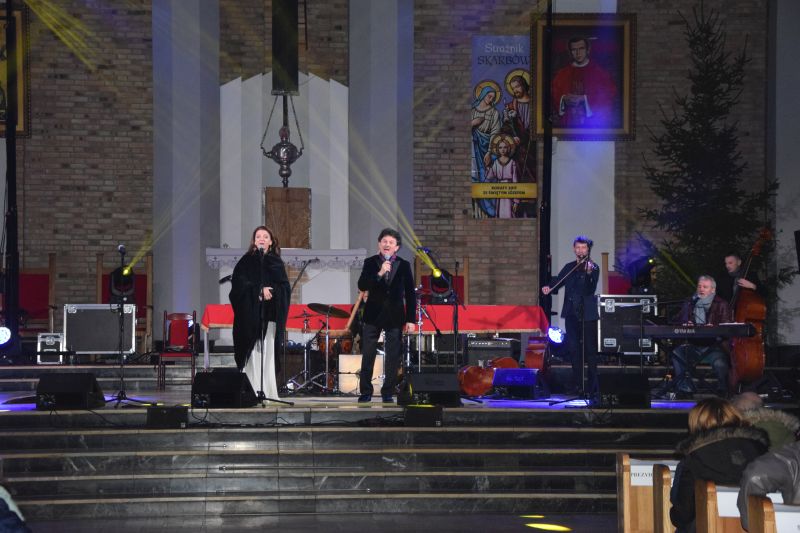 Co roku w kościele pw. Maksymiliana Marii Kolbego w Lubinie odbywają się koncerty świąteczne, organizowane przez starostę lubińskiego, podczas których można posłuchać znanych i lubianych artystów. Dzisiaj kolędy i pastorałki zaśpiewali występujący na co dzień w Piwnicy Pod Baranami Jacek Wójcicki i Beata Rybotycka oraz Hanka Rybka z góralskim zespołem. Podczas koncertu wspominano również tych, którzy przy tegorocznym świątecznym stole już nie będą mieli okazji spotkać się z bliskimi, między innymi Zbigniewa Wodeckiego, którego utwory też wybrzmiały w murach kościoła.