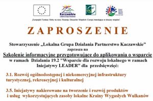 Stowarzyszenie Lokalna Grupa Działania Partnerstwo Kaczawskie zaprasza na Szkolenie informacyjne przygotowujące do aplikowania o pomoc finansową w ramach działania Wsparcie dla rozwoju lokalnego w ramach Inicjatywy LEADER.