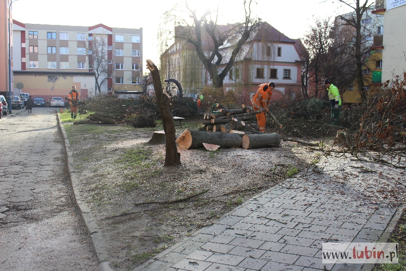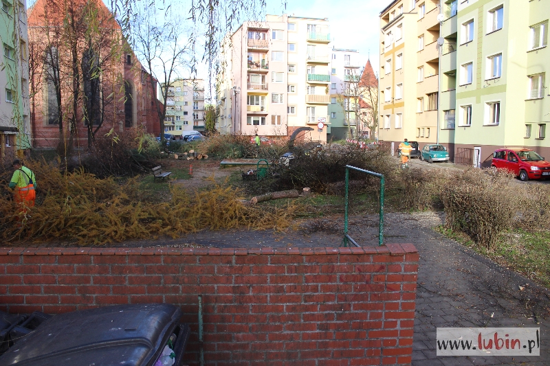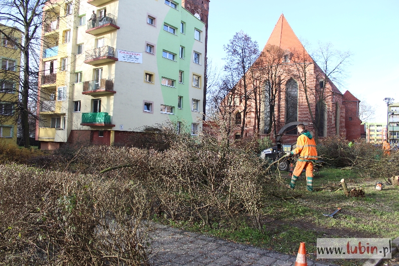 Rozpoczęła się przebudowa skweru między Rynkiem a ul. Reja w Lubinie. Od rana robotnicy wycinają krzewy i drzewa, przygotowując teren pod tę inwestycję. Droga zostanie poszerzona, powstanie tam ciąg pieszo-samochodowy, będą też gdzie zaparkować auto.