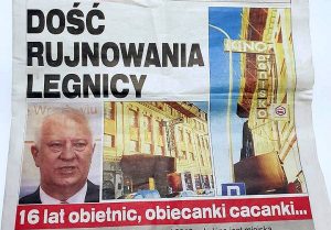 Może Pan Tadeusz Krzakowski nie bywa na podwórkach? Może dawno nie widział jak wygląda Teatr Letni czy kino Ognisko? My legniczanie te obiekty, zrujnowane i opuszczone widzimy codziennie. Wydałem materiał prywatny jako informacje dla legniczan. Nie jest on materiałem wyborczym. W świetle prawa prasowego nie jest również gazetą.
