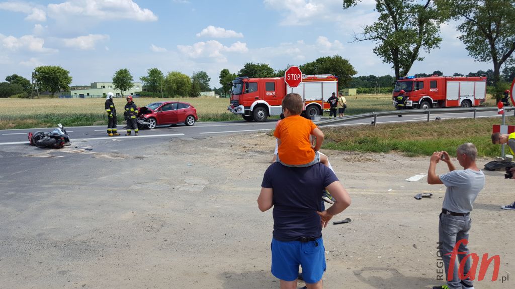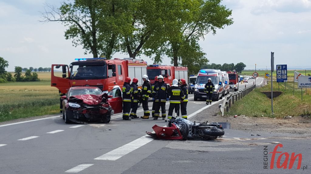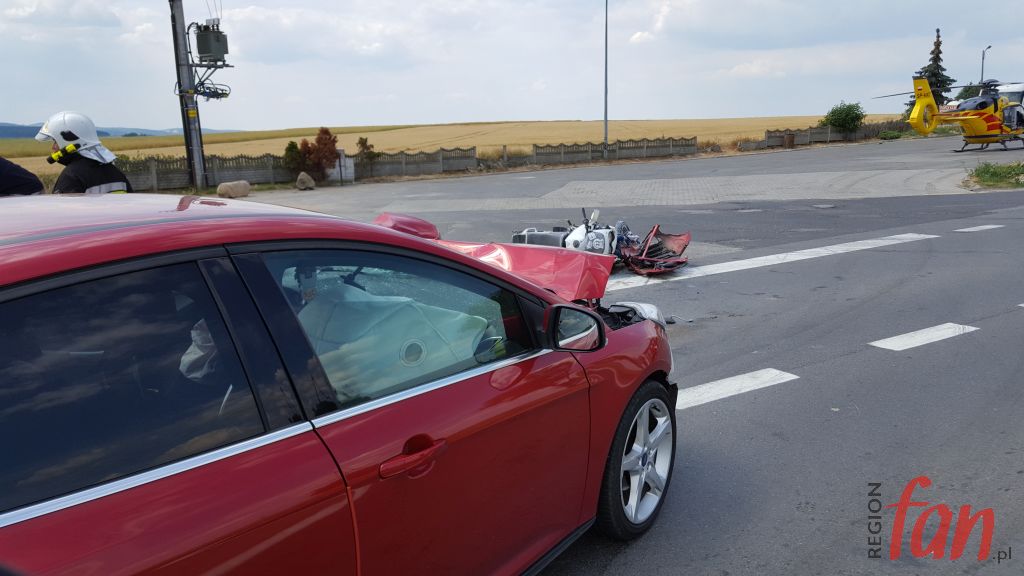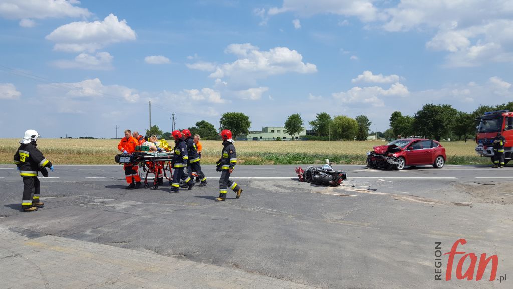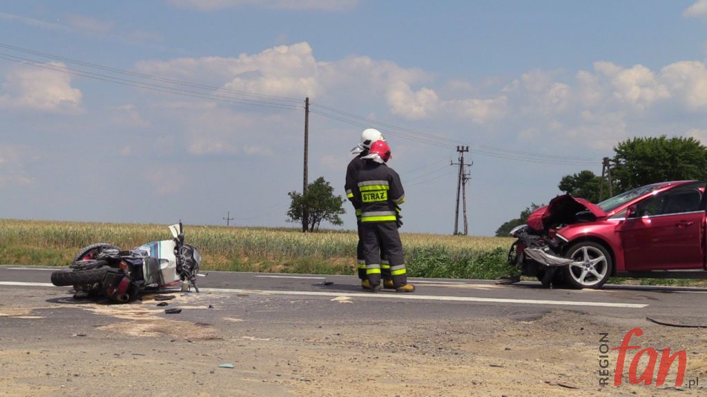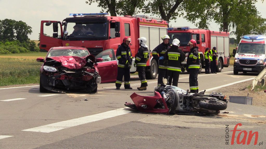 Ze wstępnych ustaleń policji wynika, że wiozący pasażera motocyklista zderzył się czołowo ze skręcającym w lewo fordem. Obaj doznali poważnych obrażeń, konieczne było wezwanie Lotniczego Pogotowia Ratunkowego. Na miejscu były trzy karetki oraz strażacy, którzy pierwsi udzielili poszkodowanym pomocy medycznej.