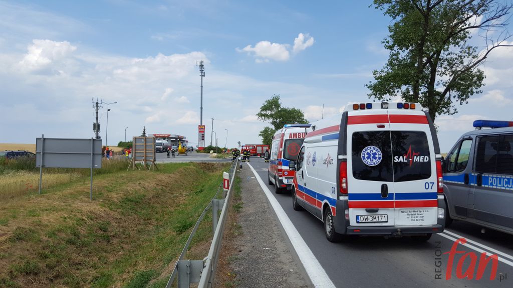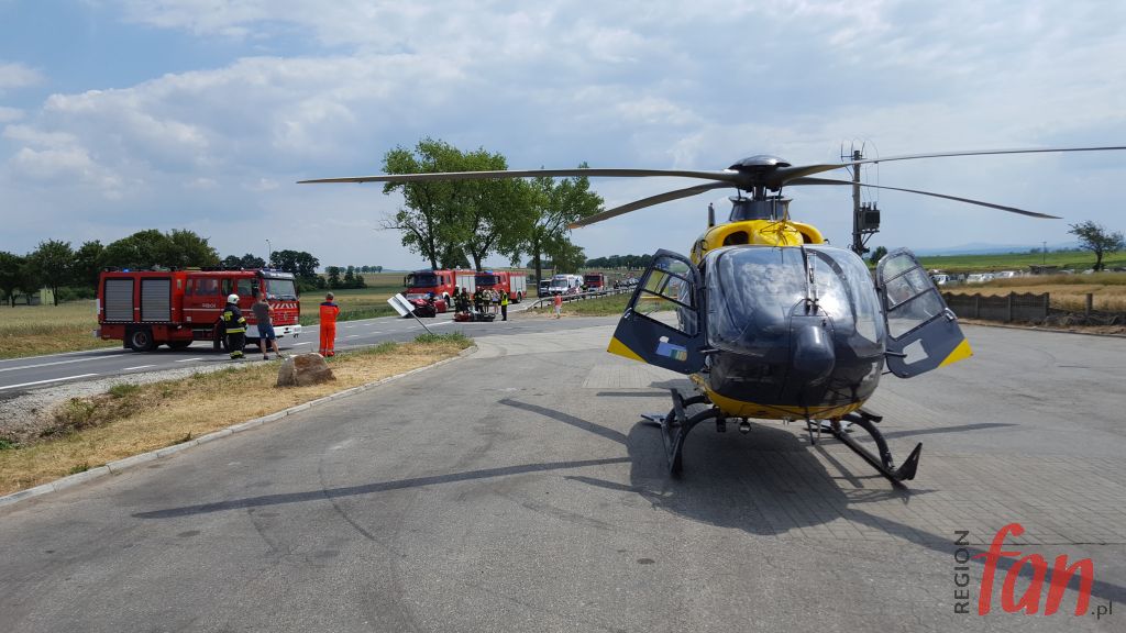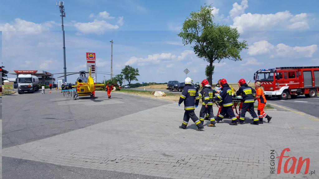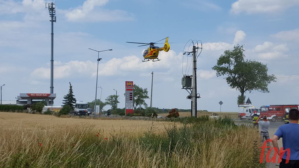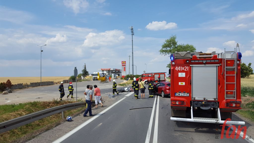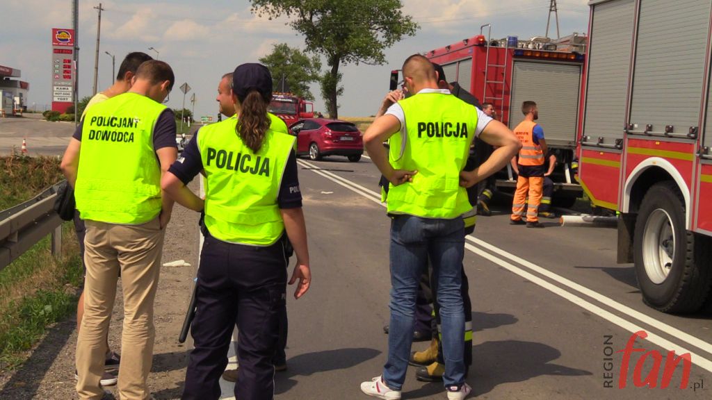 Ze wstępnych ustaleń policji wynika, że wiozący pasażera motocyklista zderzył się czołowo ze skręcającym w lewo fordem. Obaj doznali poważnych obrażeń, konieczne było wezwanie Lotniczego Pogotowia Ratunkowego. Na miejscu były trzy karetki oraz strażacy, którzy pierwsi udzielili poszkodowanym pomocy medycznej.