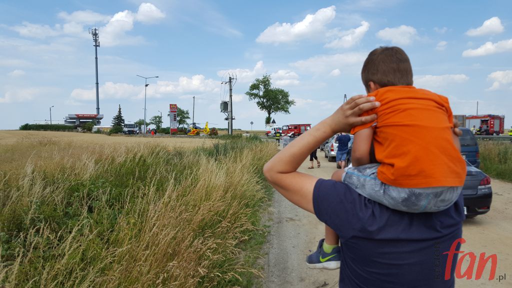 Dużo pracy mieli strażacy. Oprócz zabezpieczenia miejsca zdarzenia musieli wyznaczyć tymczasowe lądowisko i… dyskutować z roszczeniowymi kierowcami, którzy utknęli w korku. Niektórzy, zniecierpliwieni czekaniem nie mogli zrozumieć, że nie można było puścić ruchu obok czekającego na rannego helikoptera. Wkrótce zablokowane samochody ruszyły, jednak ruch na DK3 został wstrzymany do czasu wykonania czynności przez biegłych. Utrudnienia trwały do około godz. 17.