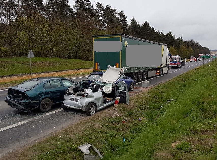Na krajowej trójce, na wysokości Biedrzychowej w gminie Polkowice, zderzyły się dwa samochody ciężarowe i trzy osobowe. Są objazdy.