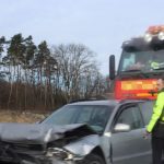 Doszło do zderzenia tira, audi i autobusu pracowniczego na drodze serwisowej, za rondem w kierunku Polkowic.