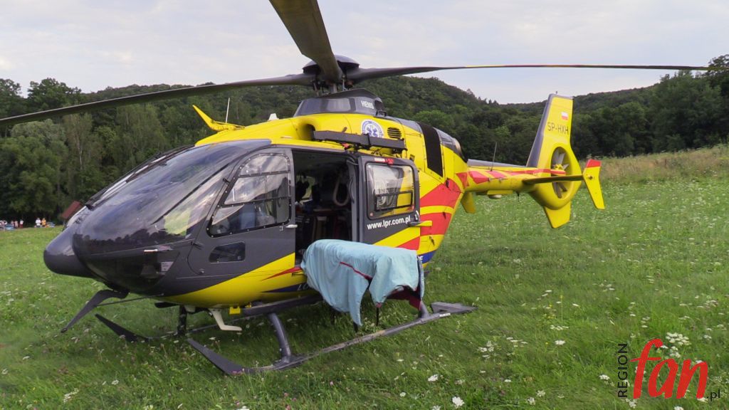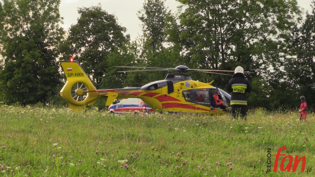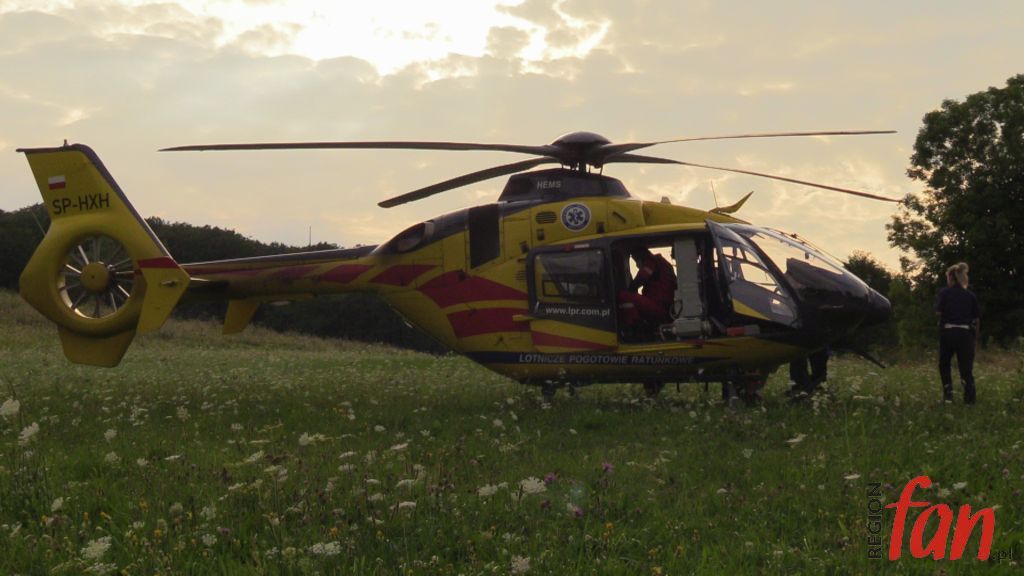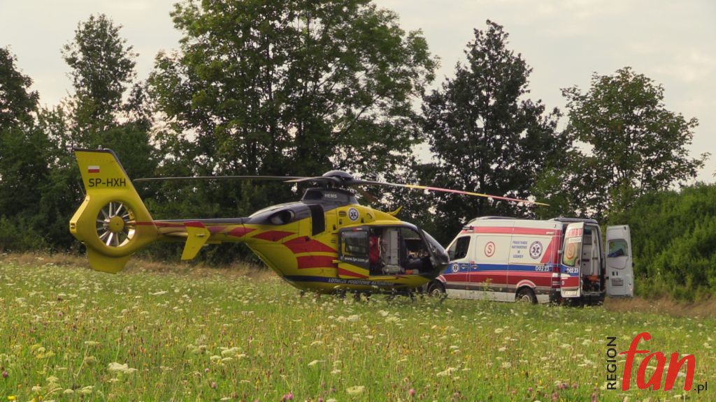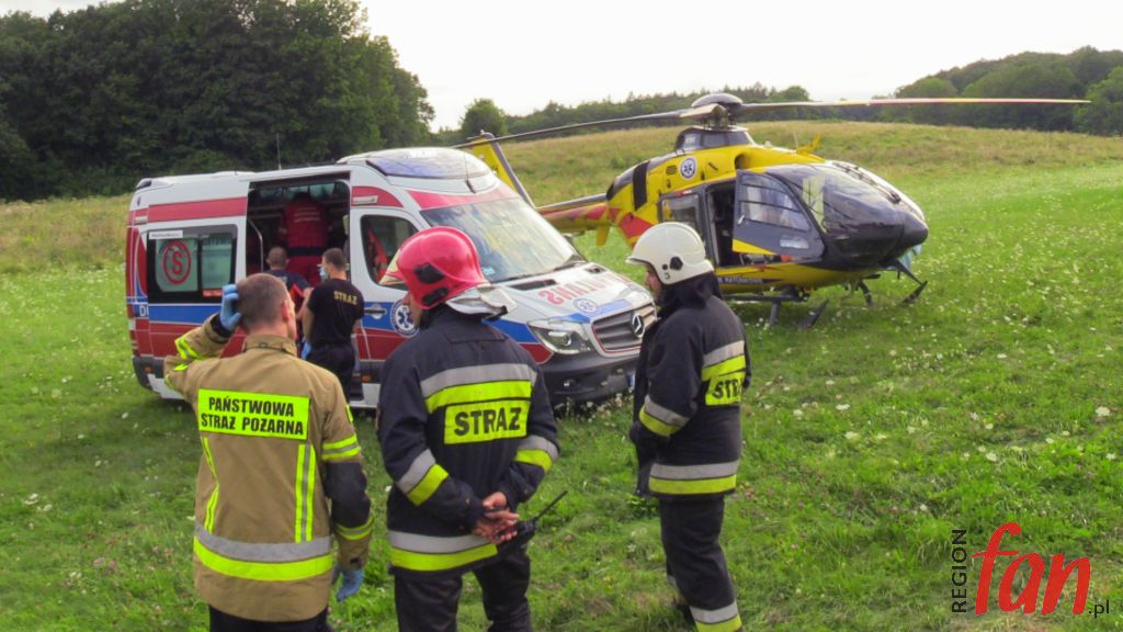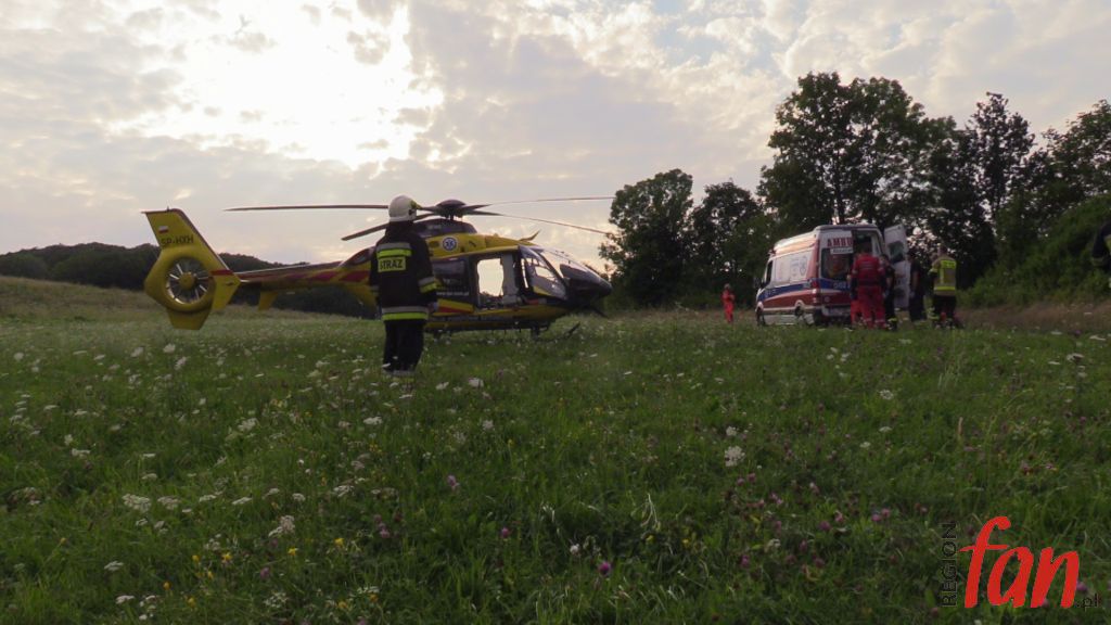 Na leżącego obok roweru mężczyznę natknęli się turyści. Był nieprzytomny, sytuacja wyglądała na wypadek komunikacyjny. Sytuacja miała miejsce w centrum Parku Krajobrazowego. Bezpośredni dojazd do miejsca karetką był niemożliwy. Strażacy z ratownikami znieśli przytomnego już poszkodowanego do karetki, następnie przekazali rowerzystę załodze Lotniczego Pogotowia Ratunkowego, która przetransportowała go do szpitala w Legnicy. Na miejscu zdarzenia obecna była policja, która prowadzi postępowanie wyjaśniające w tej sprawie. Strażacy i policjanci przypominają o bezpieczeństwie podczas rowerowych wypadów.