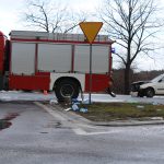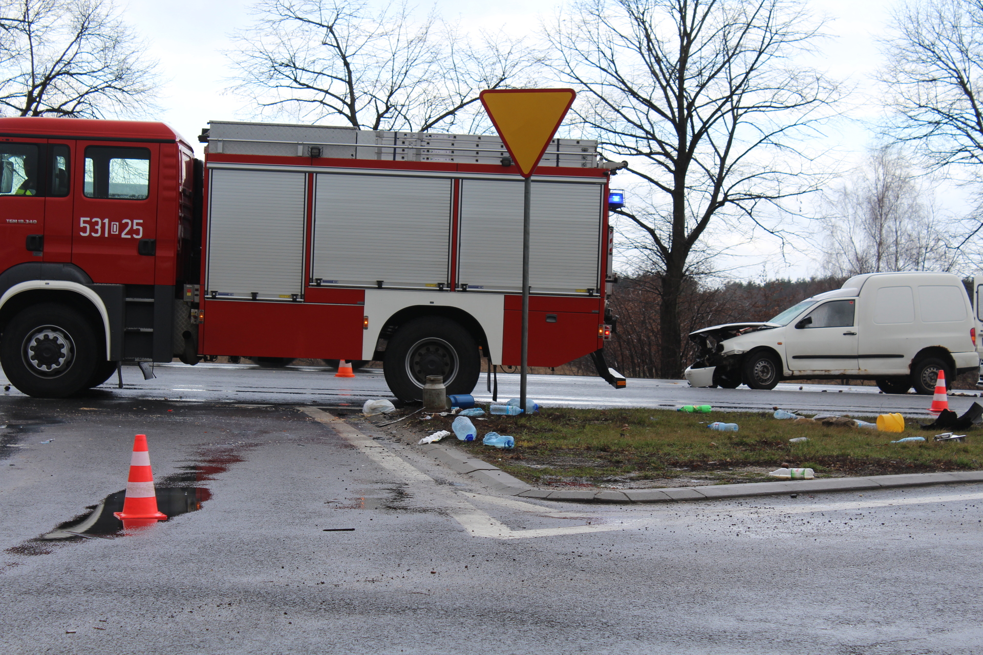 Ratownicy, po zabezpieczeniu terenu działań i odłączeniu akumulatora w rozbitym pojeździe, usunęli z jezdni rozlane płyny eksploatacyjne.