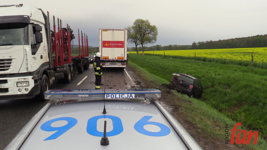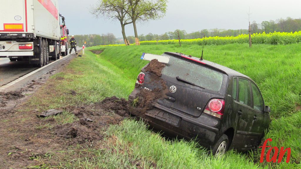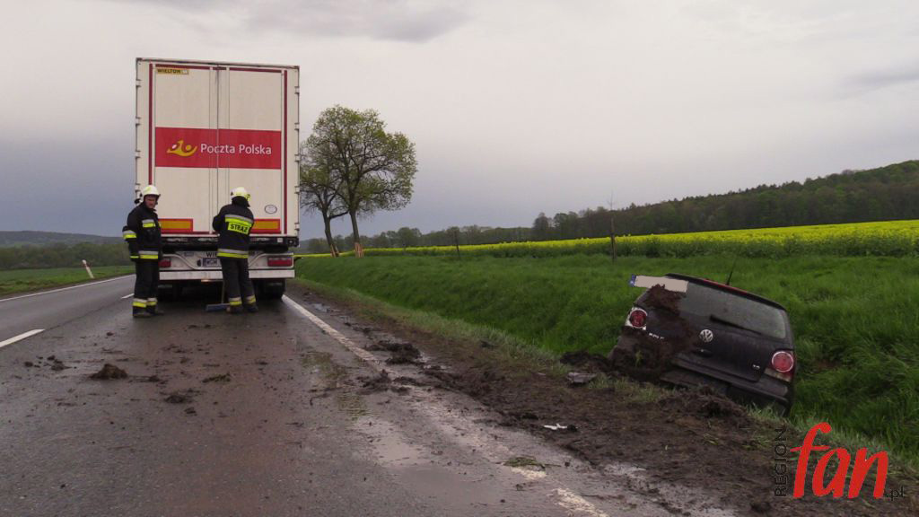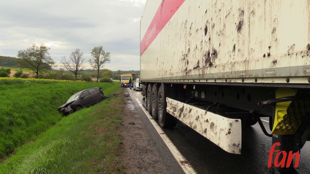 Do kolizji doszło ok. godz. 17. Kierująca osobowym volkswagenem kobieta, prawdopodobnie podczas manewru wyprzedzania, uderzyła w kabinę ciężarowego iveco, po czym straciła panowanie nad pojazdem i z dużą prędkością wjechała do przydrożnego rowu. Poszkodowana wyszła z auta o własnych siłach. Na miejscu pojawili się pracownicy pogotowia ratunkowego, którzy jednak uznali, że hospitalizacja nie jest konieczna.