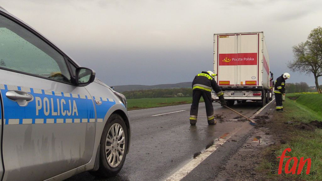 Na nic zdały się tłumaczenia kobiety o pośpiechu. Policjanci byli bezwzględni – posypały się punkty karne i mandat. Uszkodzenie ciężarówki nie było poważne, więc jej kierowca mógł kontynuować podróż. Przewożone przez nią przesyłki mogą jednak dotrzeć do adresatów z małym opóźnieniem. Przez kilkadziesiąt minut trasa Dobromierz – Bolków była bowiem częściowo zablokowana. W tym czasie ruch odbywał się wahadłowo. Rozbite auto pomoc drogowa odholowała kilka minut po godz. 18.