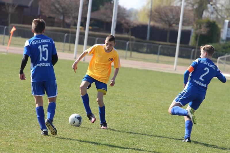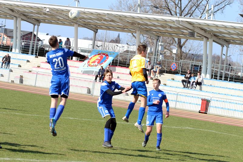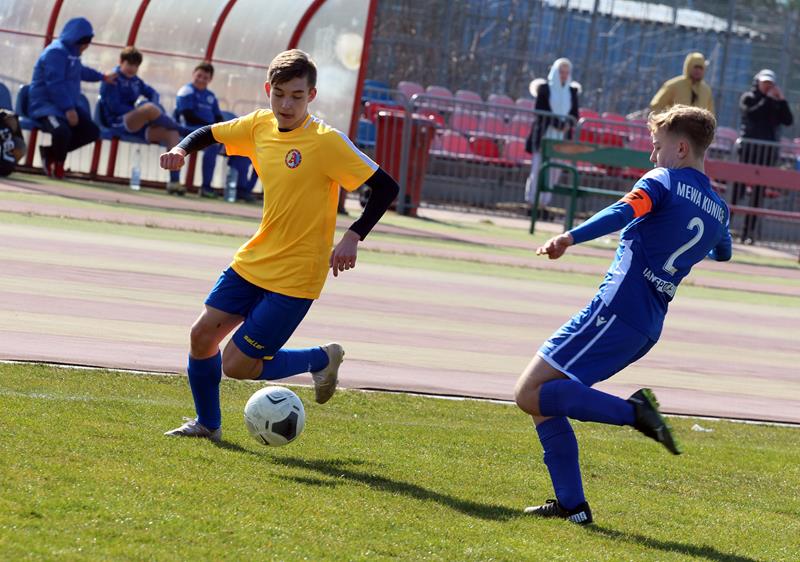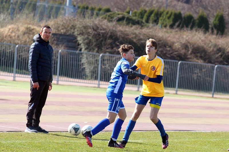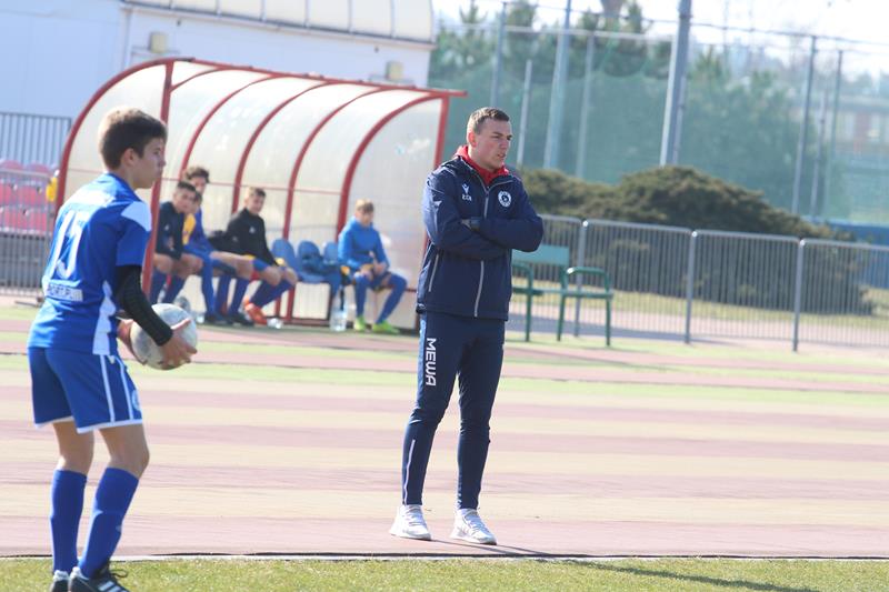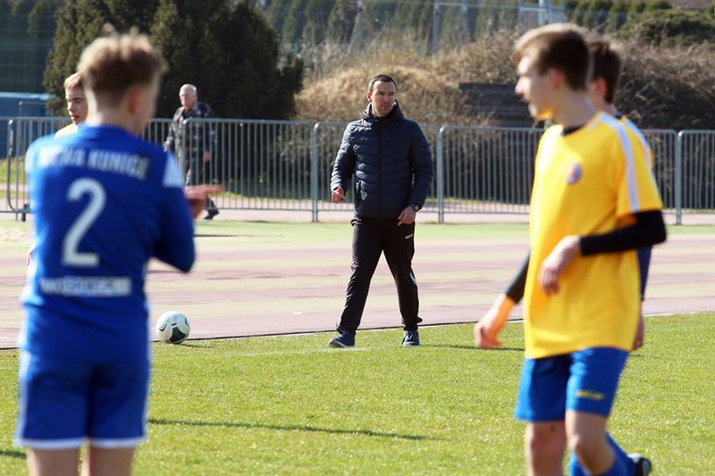 – Myślę, że to co chłopcy starali się realizować. Wynik pokazał, że częściowo został wykonane. Wiadomo jak to jest w dziecięcej piłce nożnej, jest parę mankamentów, ale nad tym pracujemy. Staramy się bardzo duży nacisk kłaść na to, aby zawodnicy po przyjęciu zaraz odwracali się w kierunku bramki przeciwnika i przyjmowali w pozycji otwartej kierunkowo, aby od samego początku wiedzieli, w którą stronę grać i uruchamiali te boczne strefy, co parę razy dzisiaj nam naprawdę wyszło – komentuje Łukasz Chodyga, trener Trampkarzy Mewy Kunice.