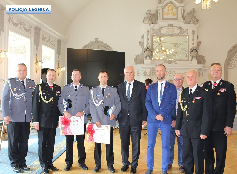 Profesjonalizm, odpowiedzialność i odwaga legnickich policjantów znalazły słowa uznania w podziękowaniach i dyplomie od komendanta wojewódzkiego Państwowej Straży Pożarnej we Wrocławiu – st. bryg. Adama Koniecznego, komendanta miejskiego PSP w Legnicy bryg. Zdzisława Sokoła oraz prezydenta Legnicy Tadeusza Krzakowskiego.