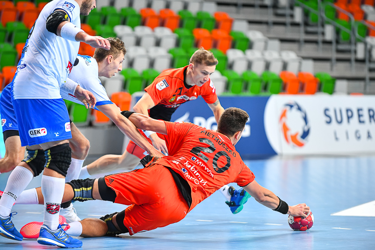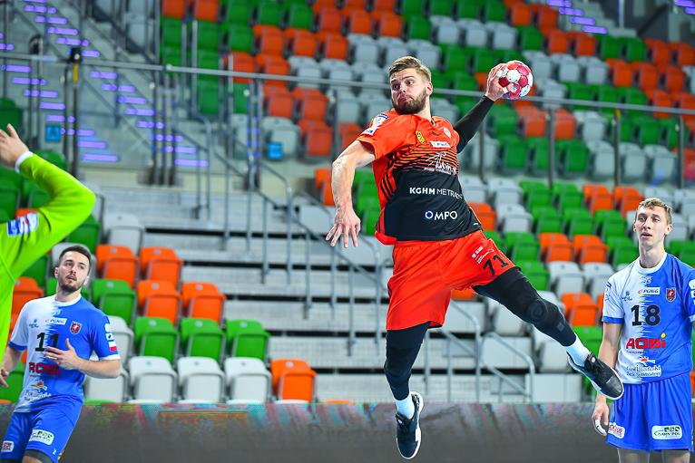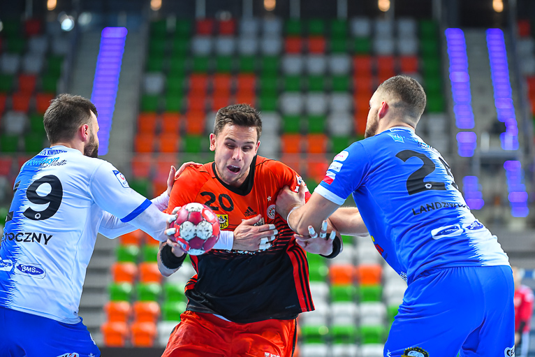 Goście szybko mogli wyjść na prowadzenie, ale rzut karny, wykonywany przez Nikodema Kutyłę obronił Marcin Schodowski. Na pierwszą bramkę czekaliśmy do czwartej minuty, wówczas wynik otworzył Michał Potoczny. Po stronie Zagłębia dwie minuty później trafił Mikołaj Kupiec i mieliśmy po 1. Kwidzynianie potrzebowali dosłownie chwili, by rzucić szybkie trzy bramki, dzięki czemu wygrywali 4:1 przed upływem dziesiątej minuty. Po kwadransie było 3:6 i o czas poprosił trener Zagłębia, Jarosław Hipner. Miedziowi grali nieskutecznie w ataku i mieli spore problemy ze zdobywaniem bramek, choć tak naprawdę sami utrudniali sobie sytuację, popełniając masę błędów własnych. Takiego problemu nie miał Kwidzyn i Damian Przytuła, który bombardował bramkę lubinian z drugiej linii. O skuteczności Zagłębia w ofensywie najlepiej świadczy osiem bramek, zdobytych w pierwszych dwóch kwadransach meczu. MMTS miał na swoim koncie cztery trafienia więcej, więc wynik wciąż był sprawą otwartą.