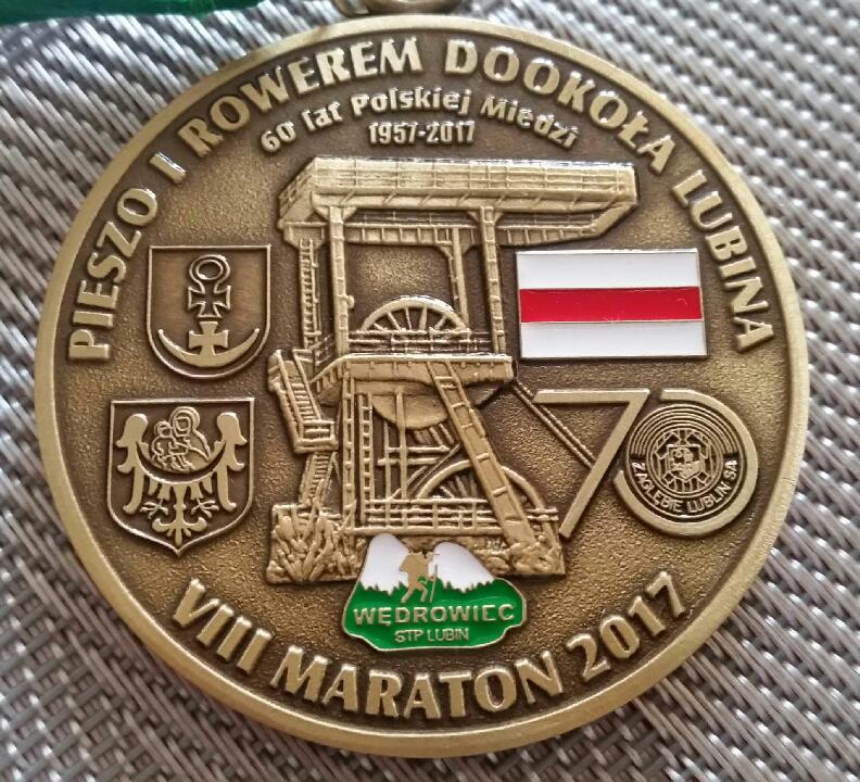 Maraton jak co roku zorganizowało Stowarzyszenie Turystyki Pieszej Wędrowiec. Dla uczestników rajdu przygotowano medale, gdzie oprócz herbów miasta i powiatu, pojawił się też herb piłkarskiego Zagłębia Lubin. Rzecz w tym, że na medalu napisane jest… Zagłębie Lublin.