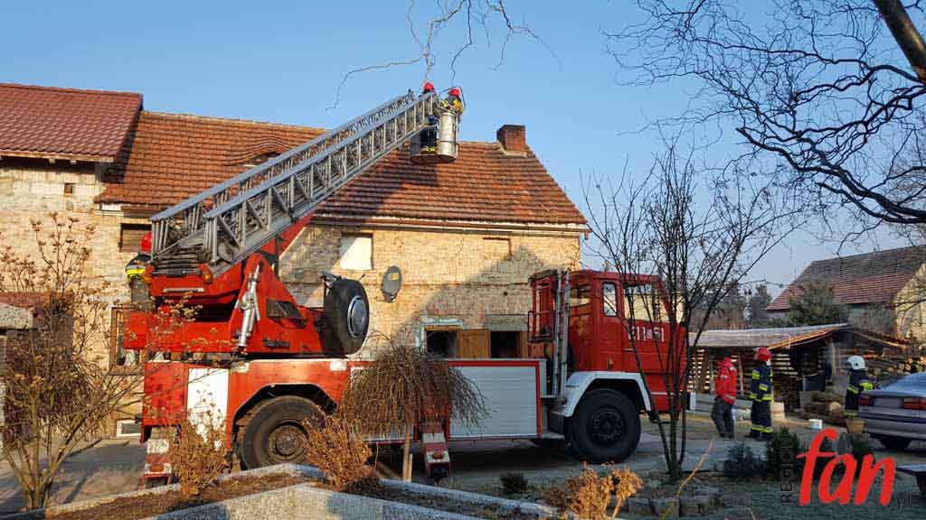Do gaszenia pożaru komina ruszyły dwa zastępy strażaków. Ratowników z Ochotniczej Straży Pożarnej w Męcince i Powiatowej Straży Pożarnej w Jaworze wsparli koledzy ze Złotoryi, którzy użyczyli podnośnika (sprzęt jaworskich strażaków jest od kilku tygodni serwisowany).