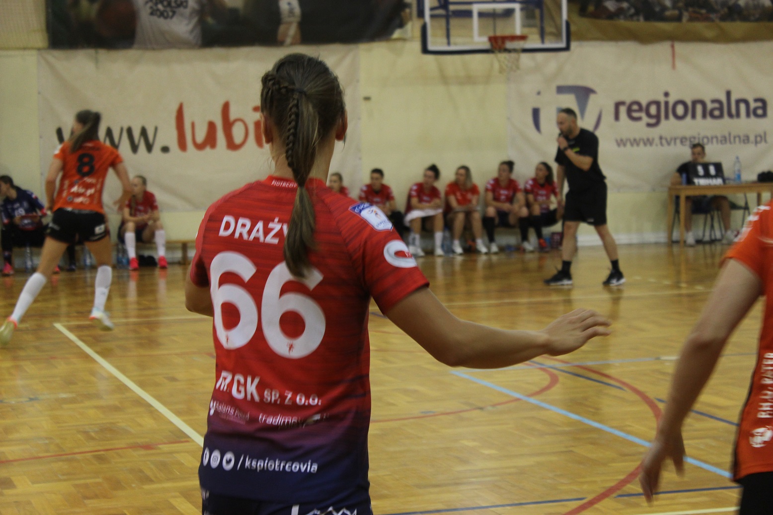 Początek meczu w hali SP 14 w Lubinie zaczął się od szybkiego 3:0 dla gospodyń. Później było jeszcze lepiej, bo Zagłębie grało skutecznie i wykorzystywało nadarzające się okazję. Miedziowe prowadziły 8:4, później 9:6, ale jeszcze przed przerwą piotrkowianki wyszły na prowadzenie, zdobywając bramki z gry i rzutów karnych, których w całym meczu było bardzo wiele. Jednego z nich obrobiła w początkowej fazie meczu Katarzyna Drzemicka, wychowanka Zagłębia. Do przerwy Piotrcovia prowadziła 11:10.