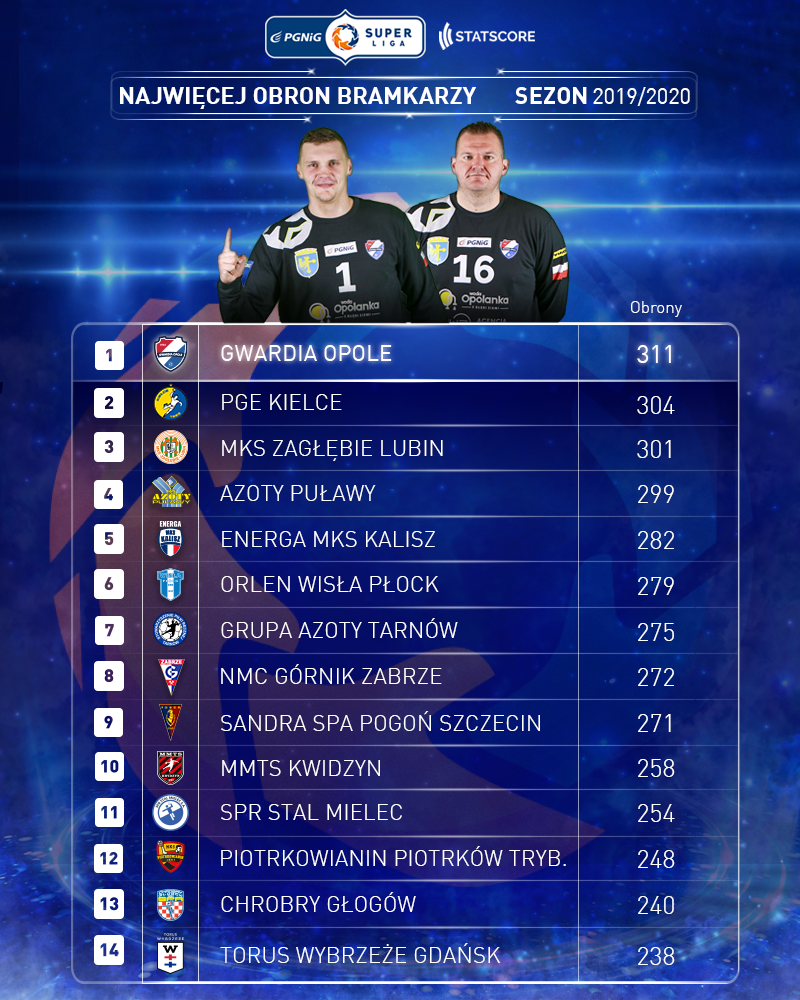 Obrony bramkarzy klubów PGNiG Superligi w sezonie 2019/2020: