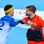 Przez pierwsze trzy minuty zespoły „badały się” i nikt w tym czasie nie zdobył bramki. Później mieliśmy dwa szybkie trafienia tarnowian i dwie odpowiedzi Romana Chychykalo z rzutów karnych. Pierwszy kwadrans to wyrównana gra z lekkim wskazaniem na gości, którzy w tym czasie wyrywali 6:4. Chwilę później goście wyszli na 3-bramkowe prowadzenie, a w ich ekipie brylował Japończyk Rennosuke Tokuda. Pierwsza połowa zakończyła się wynikiem 12:10 dla drużyny gości.