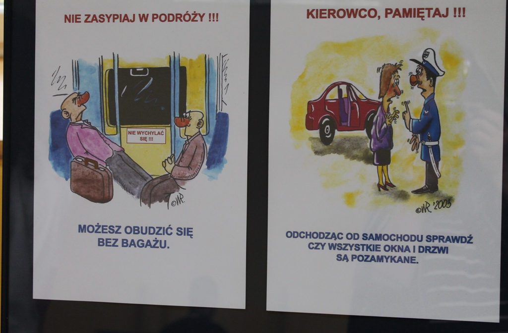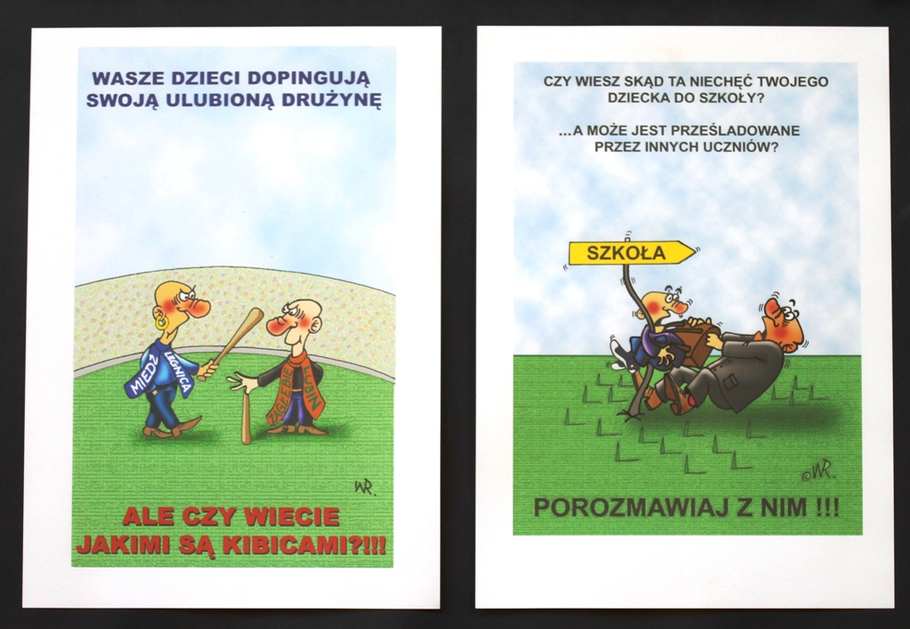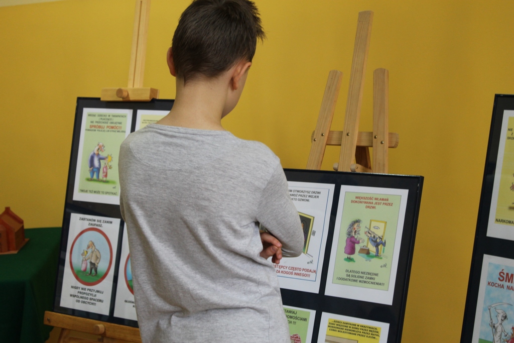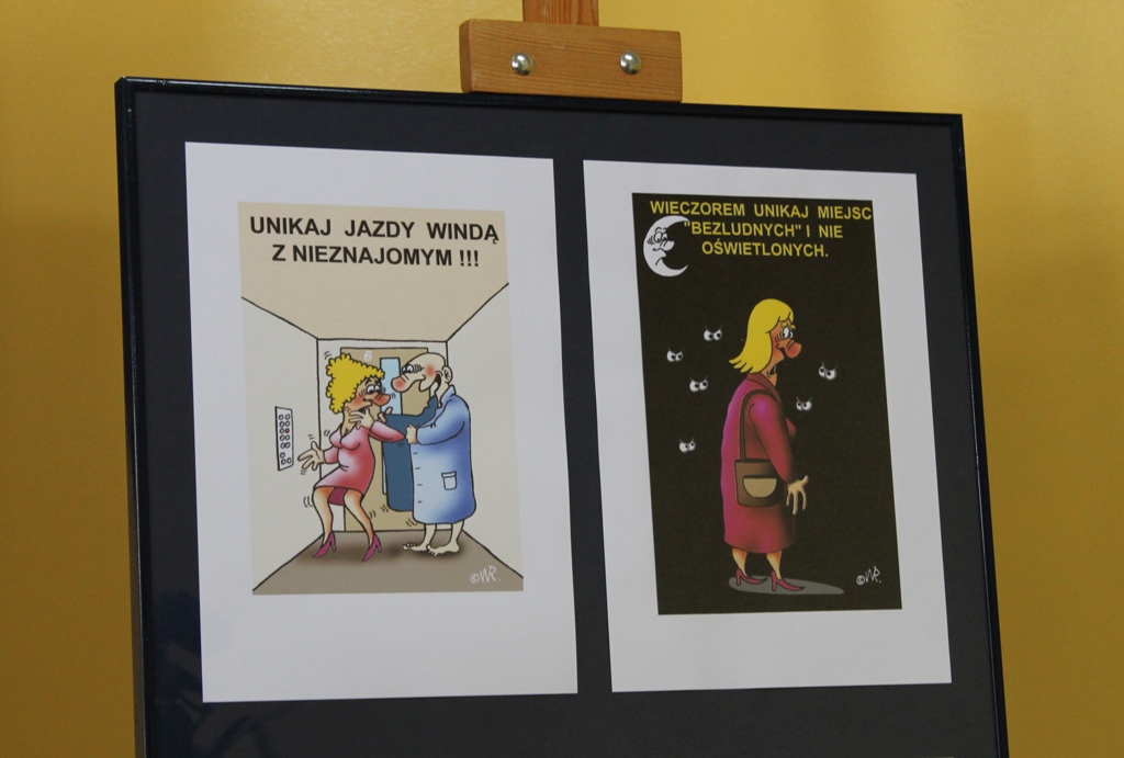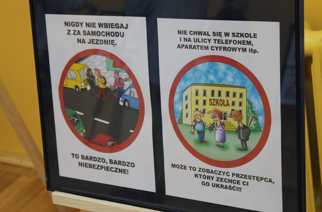 Zamiast nudnych pogadanek o niebezpieczeństwach, jakie czyhają na człowieka w windzie, pod bankomatem czy na ulicy – uczniowie legnickiej podstawówki zobaczyli wystawę rysunków mających ich ustrzec przed nieszczęściem. Autorem prac jest doskonale znany strażnik miejski – rodowity chojnowianin, karykaturzysta i radny powiatu legnickiego Robert Wierzbicki.