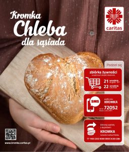 Więcej szczegółów na temat akcji „Kromka Chleba dla Sąsiada” można znaleźć na stronie internetowej kampanii www.kromka.caritas.pl.