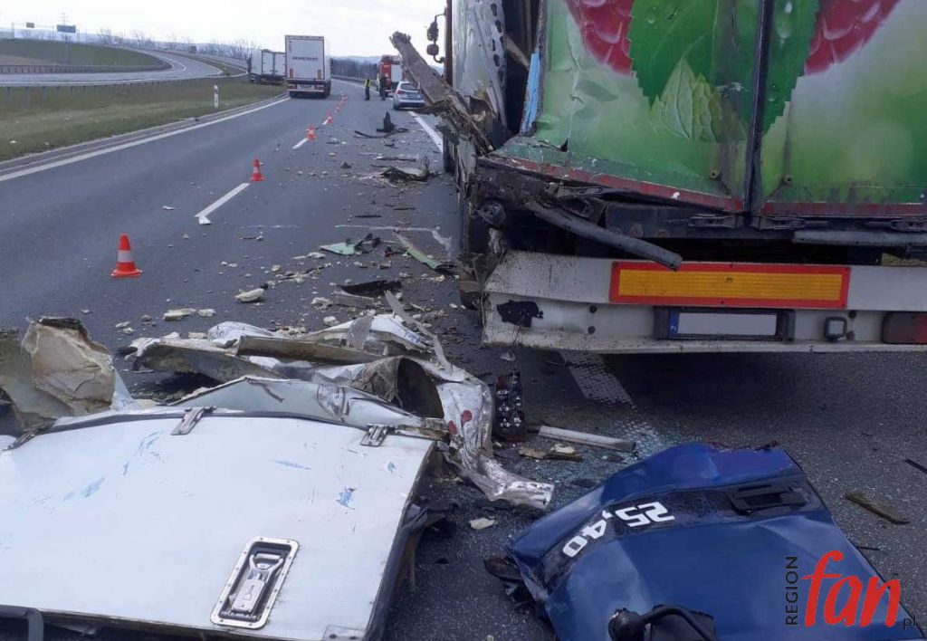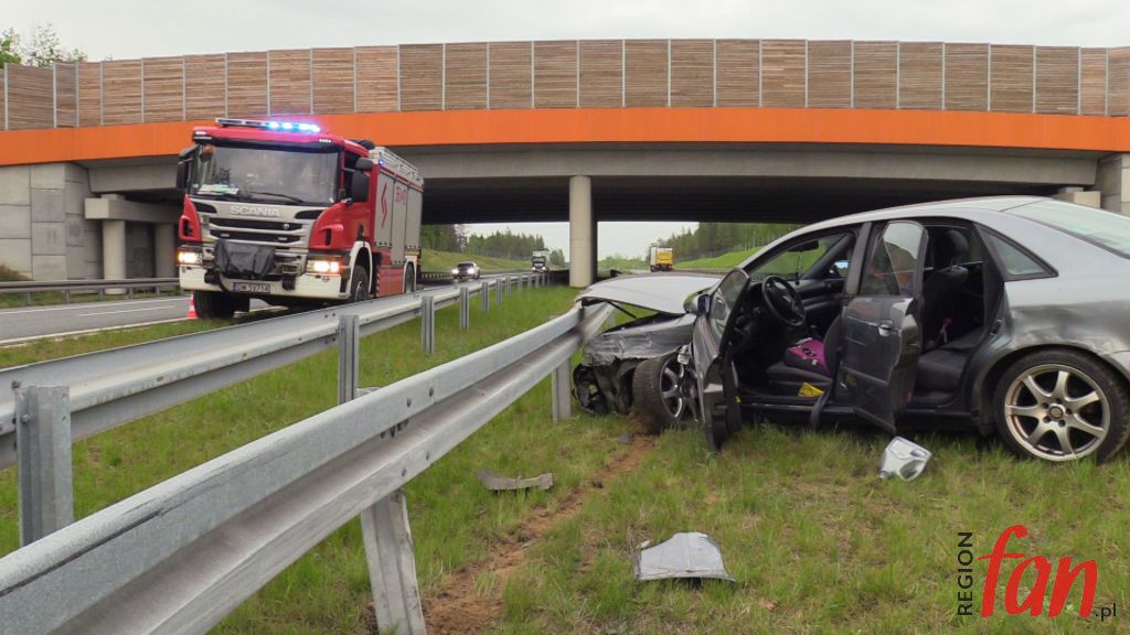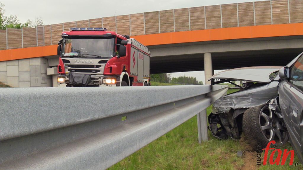 Samochody zderzyły się około godz. 13, między węzłami Legnica Zachód i Legnica Południe, na pasie prowadzącym w kierunku Bolkowa. W tej chwili na miejscu wciąż pracuje policja.