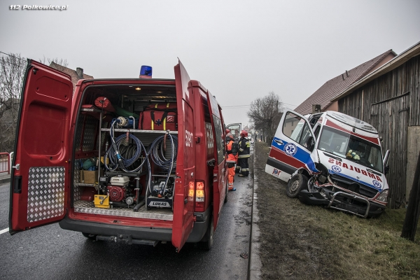 Trzy osoby zostały poszkodowane w wyniku zderzenia samochodu osobowego z karetką pogotowia na drodze krajowej nr 12 w Radwanicach. Dwie z nich przewieziono do szpitala.