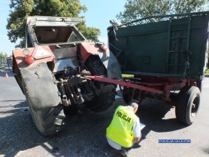 – Obrażenia odniósł 55-letni mieszkaniec Nowej Soli – informuje podinsp. Bogdan Kaleta, oficer prasowy Komendanta Powiatowego Policji w Głogowie. – Mężczyzna kierował samochodem volkswagen bus. Ze wstępnych ustaleń wynika, że rozpoczął on manewr wyprzedzania kolumny pojazdów i uderzył w prawidłowo skręcający w ulicę podporządkowaną ciągnik rolniczy zetor z przyczepami.