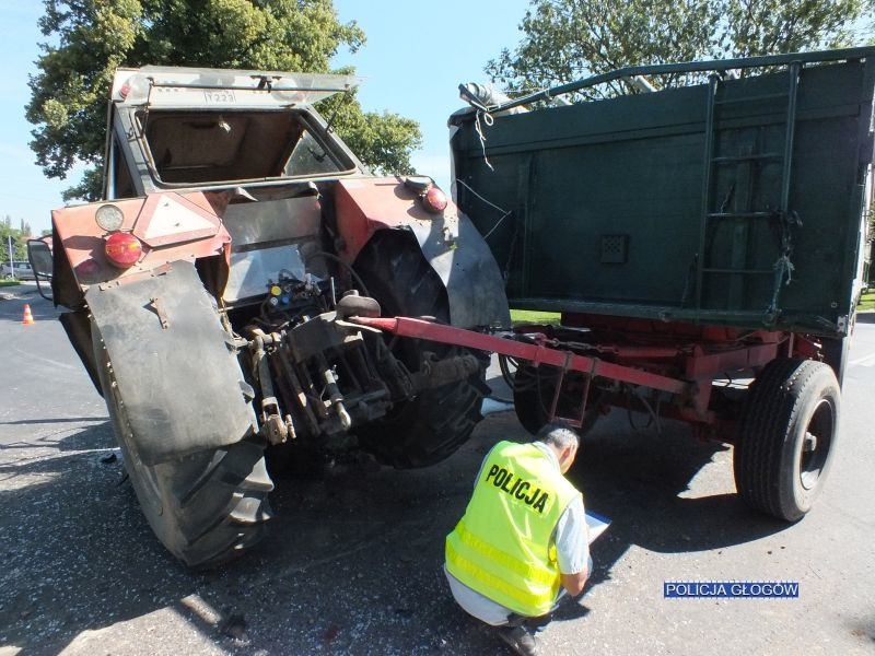 Kierujący busem volkswagen został przewieziony do szpitala na badania. Kierowca ciągnika, 59 – letni mieszkaniec Głogowa, nie odniósł poważnych obrażeń.