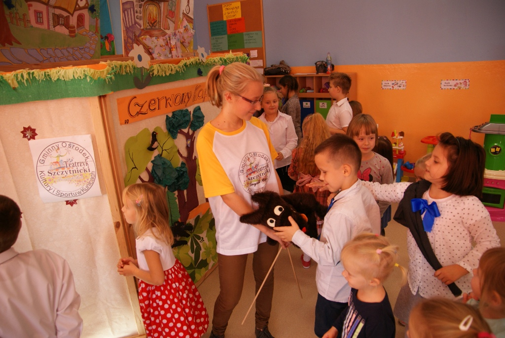 Przed najmłodszymi dziećmi, uczęszczającymi do Szkoły Podstawowej w Spalonej w gminie Kunice, wystąpił dziś Teatrzyk Szczytnicki ze Szczytnik Małych. Widzowie zobaczyli dobrze im znaną historię o Czerwonym Kapturku. Aktorzy zdobyli ich serca.