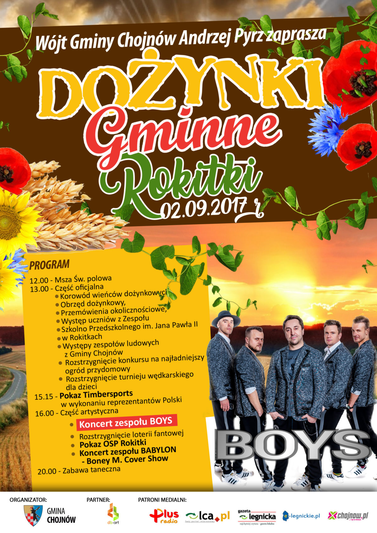 Tegoroczna zabawa odbędzie się w Rokitkach przy dźwiękach muzyki rozrywkowej z najwyższej krajowej półki. Gwiazdą dożynek będzie grupa BOYS – autorzy niezliczonej liczby przebojów, takich jak „Wolność” czy „Jesteś Szalona”. Artyści występują na scenie nieprzerwanie od 1991 roku, a w tym czasie ich płyty 6-krotnie okryły się platyną i 2-krotnie złotem, czyniąc BOYSÓW najbardziej cenionym zespołem nurtu Disco Polo.