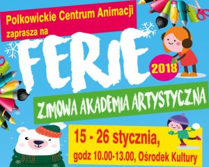 Warsztaty, gry i zabawy, spotkania m.in. ze służbami mundurowymi – to niektóre propozycje przygotowane na ferie przez Polkowickie Centrum Animacji dla dzieci powyżej 6. roku życia.