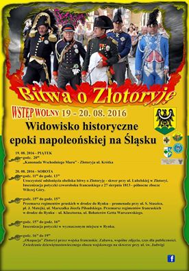 jInscenizacja historyczna walk podczas bitwy o Złotoryję z 23 sierpnia 1813 r. odbędzie się w sobotę 20 sierpnia 2016 o godz. 15:30 w Rynku Złotoryi.